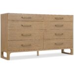 Finish: The multi-step Desert Oak finish features wire-brushing and cerusing. Stainless steel custom bar hardware features a soft Brushed Brass finish.