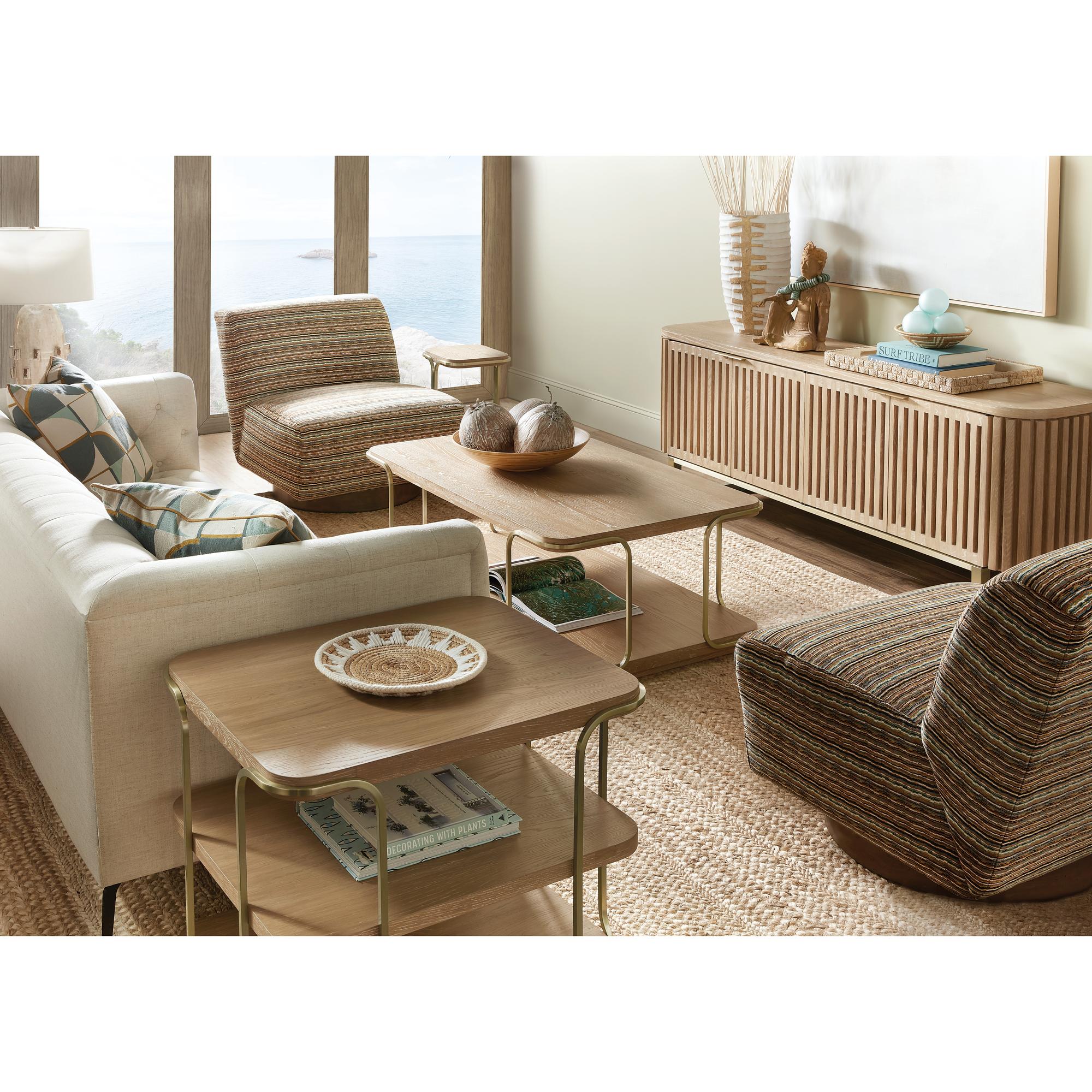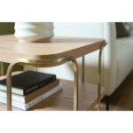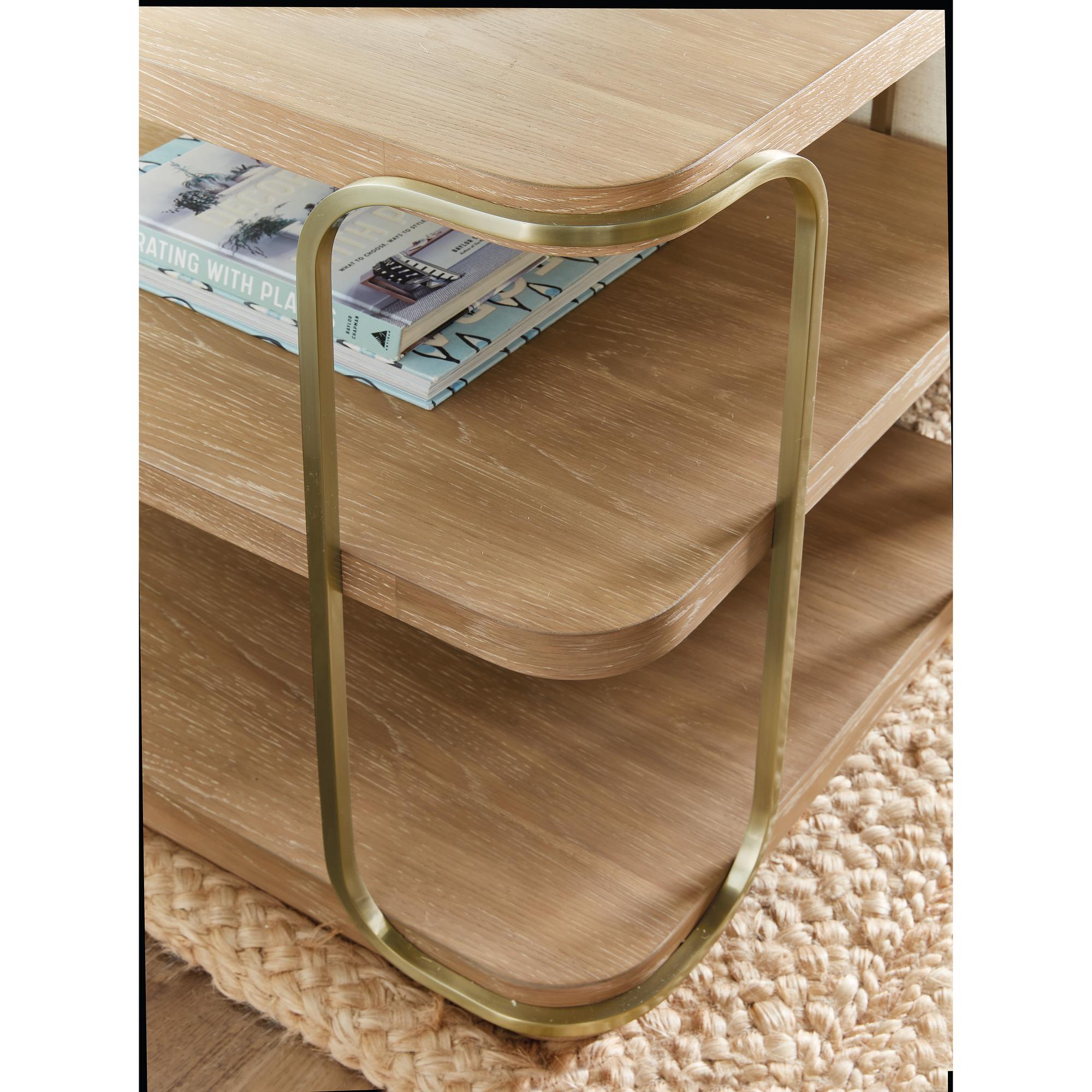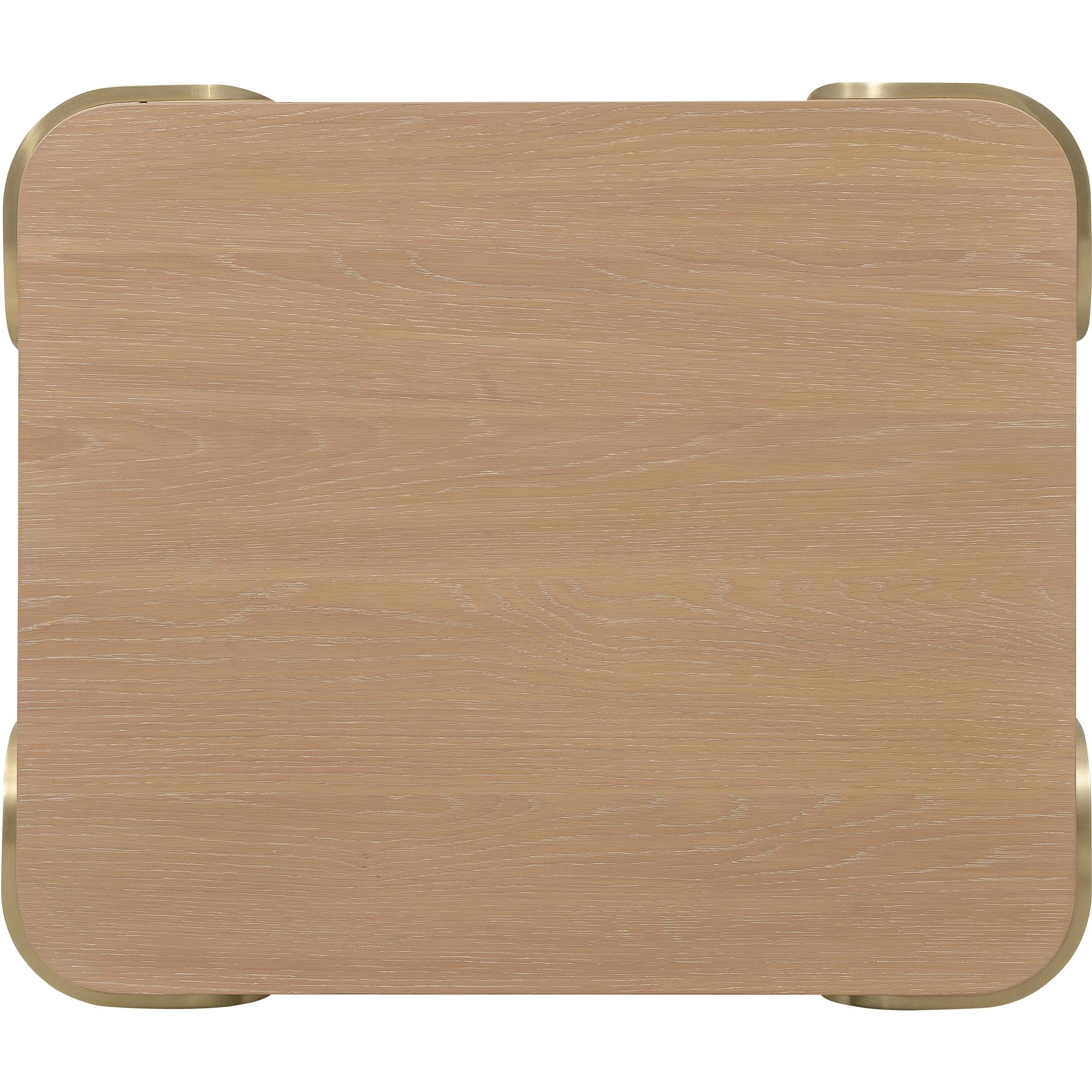 - Finish: The multi-step Desert Oak finish features wire-brushing and cerusing. Stainless steel legs feature a soft Brushed Brass finish.