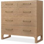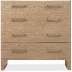Finish: The multi-step Desert Oak finish features wire-brushing and cerusing. Stainless steel custom bar hardware features a soft Brushed Brass finish.