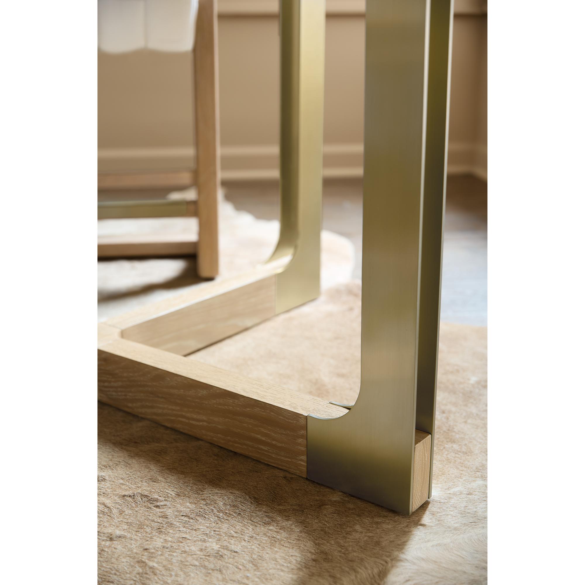 - Finish: The multi-step Desert Oak finish features wire-brushing and cerusing. Stainless steel legs feature a soft Brushed Brass finish.