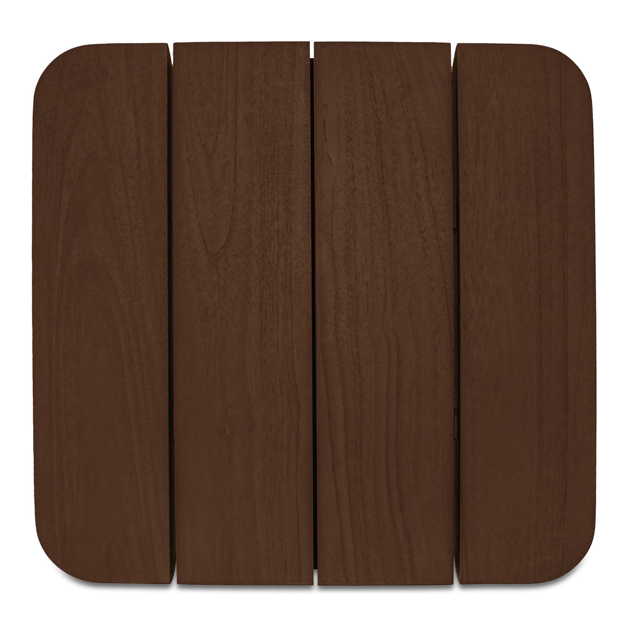 - Solid teak with a toasted brown finish