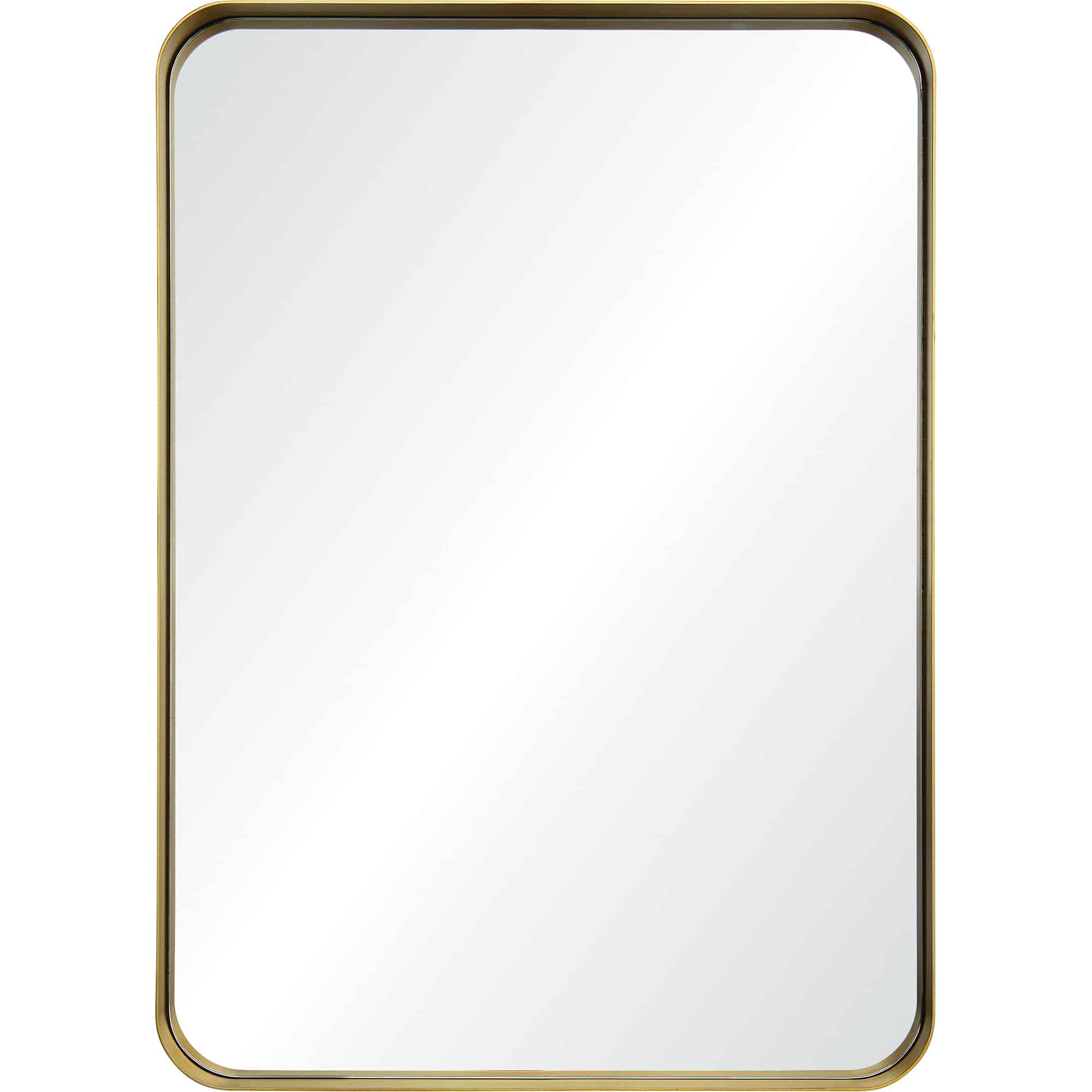 When it comes to designing a contemporary wallscape, this modern mirror offers all the right reflections. Curved corners keep the mirror’s rectangular shape far from conventional, while the recessed placement of the looking glass highlights the thin profile of the iron frame. The decorative wall mirror is finished in a brushed antique gold patina that gives contemporary spaces a hint of classical antiquity.