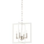 The Bayberry Hanging Small Chandelier by Megan Gorelick Interiors is ideal for over bathroom vanities. The crisp white finish and polished nickel accents provide a super clean aesthetic.