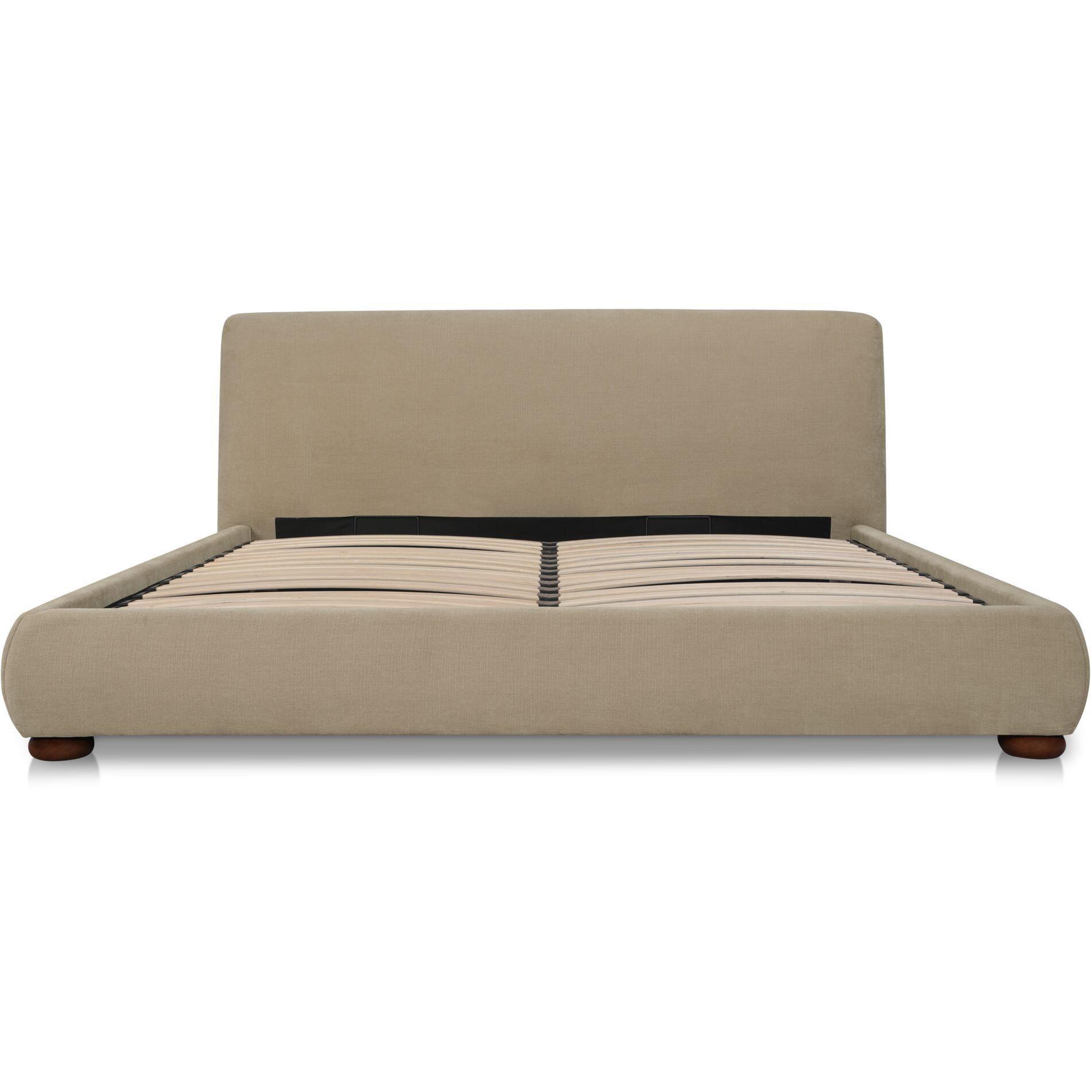 For those who like their comfort with a little character. The Beau Bed pairs a generously rounded headboard with bun-shaped legs, all wrapped in textured beige upholstery. A hydraulic lift reveals hidden storage, while its sculptural proportions and tactile fabric bring warmth to bedroom spaces. Designed for comfort and crafted for function, Beau makes a storage bed the most stylish piece in the room.