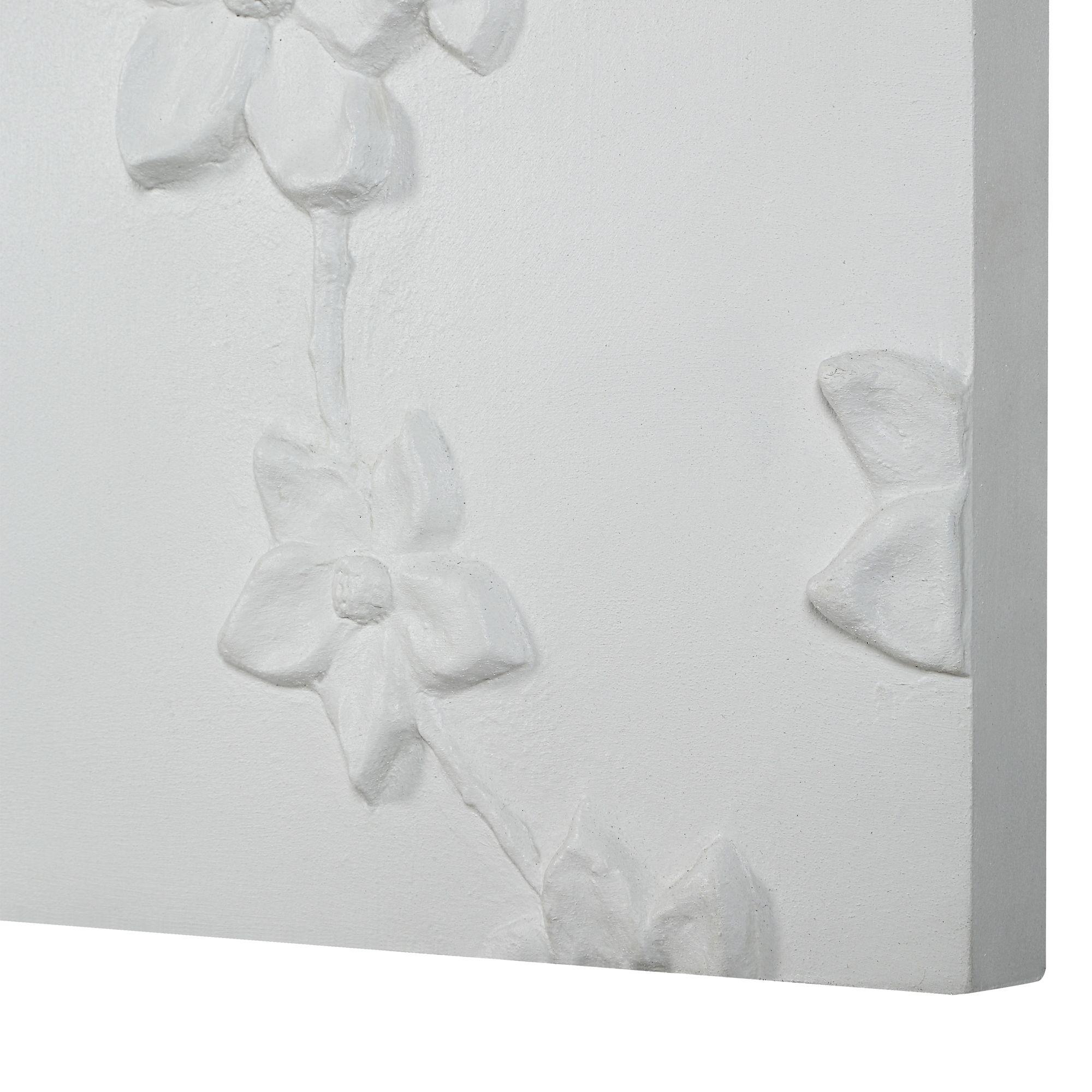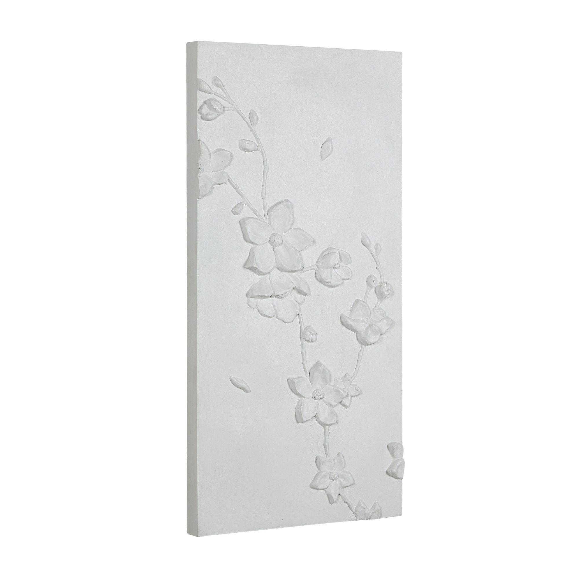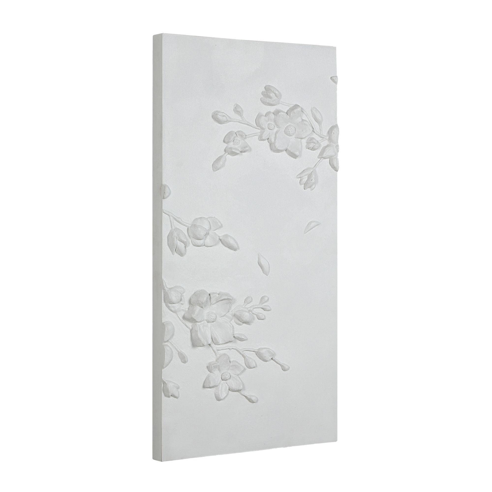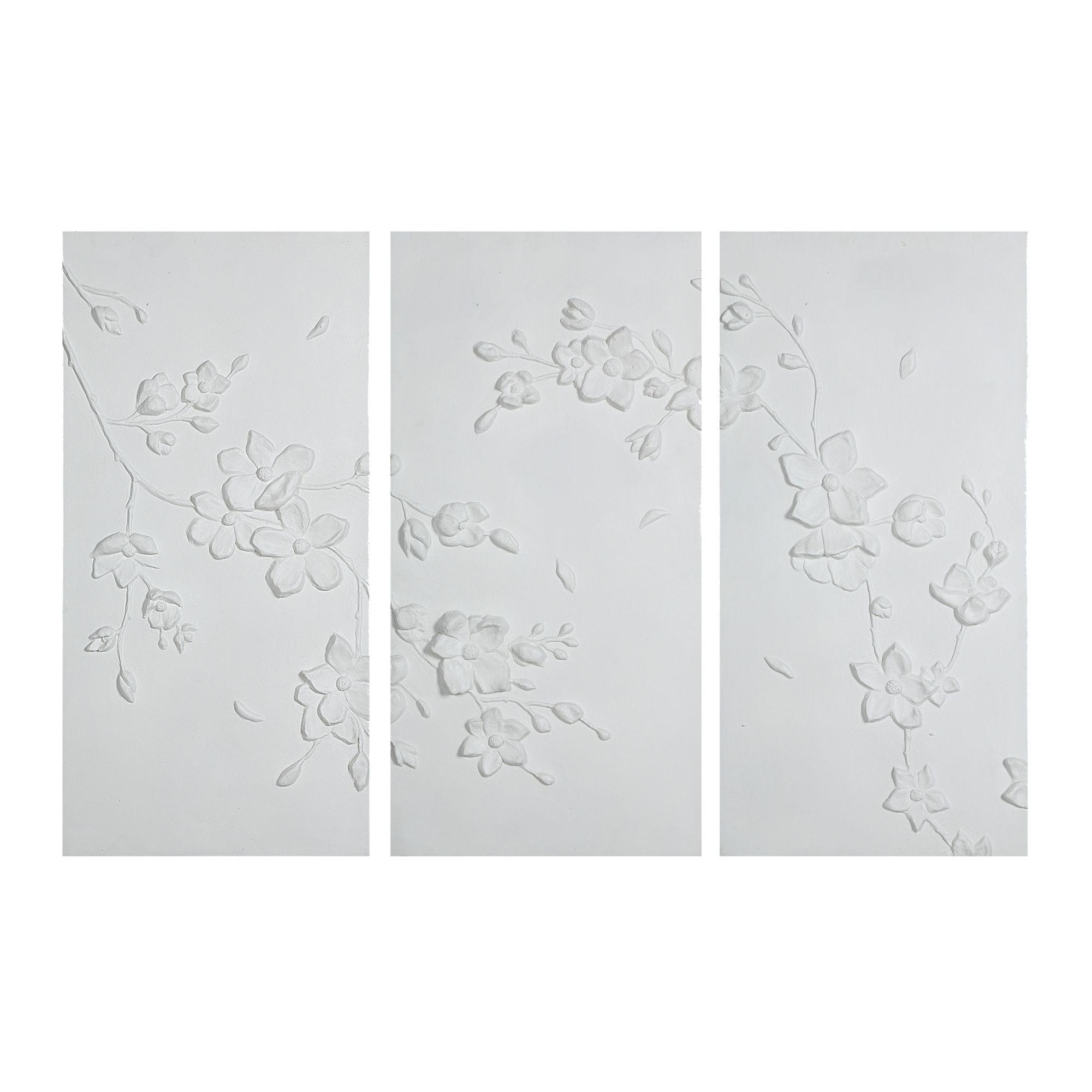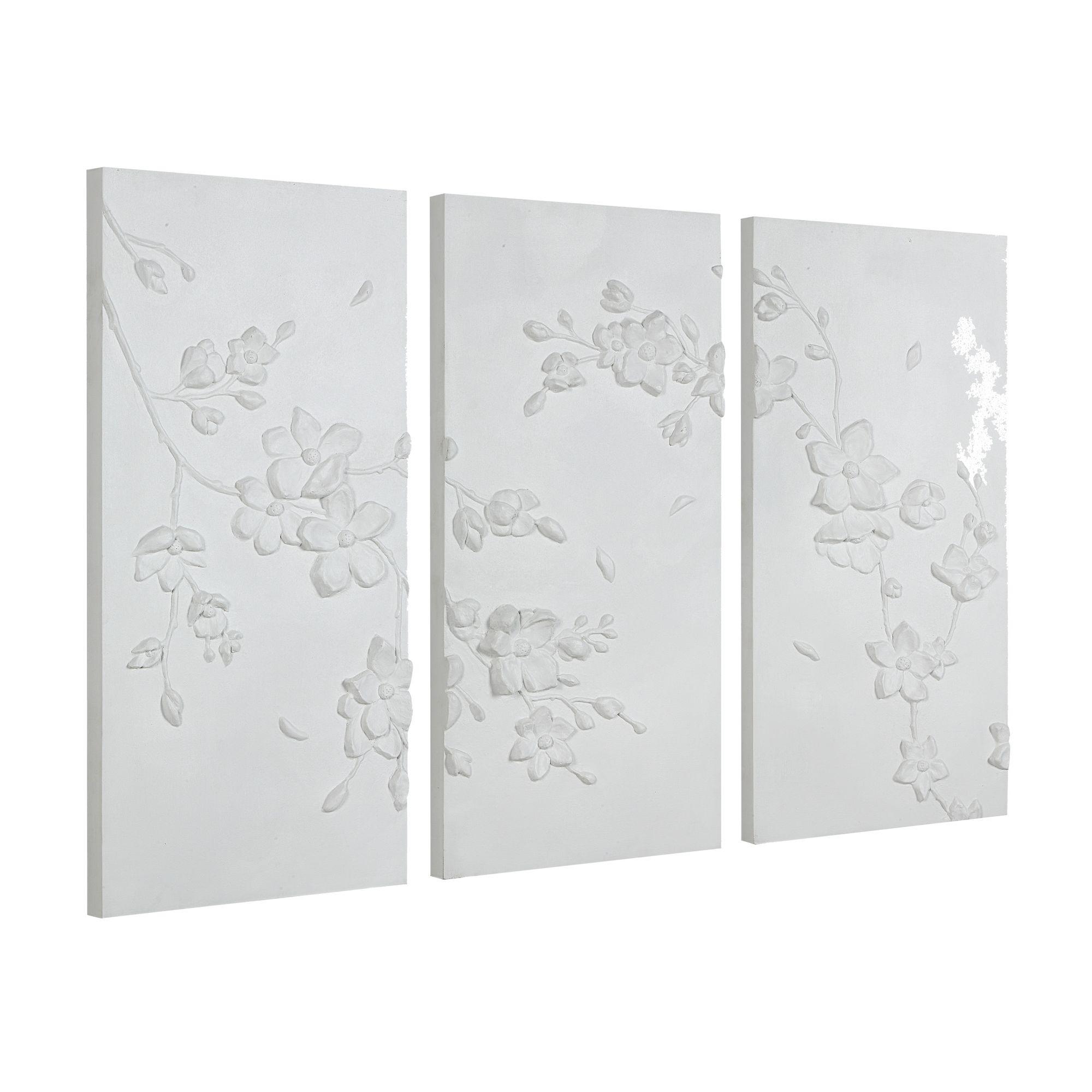Spanning nearly 5 feet, this bloom-filled wall art is just the piece you need to add beautiful botanical style to a large wall. Composed of three high-quality canvases, this unique triptych features an array of hand-painted multidimensional shapes for a dramatic effect that delivers a transitional touch to any interior.