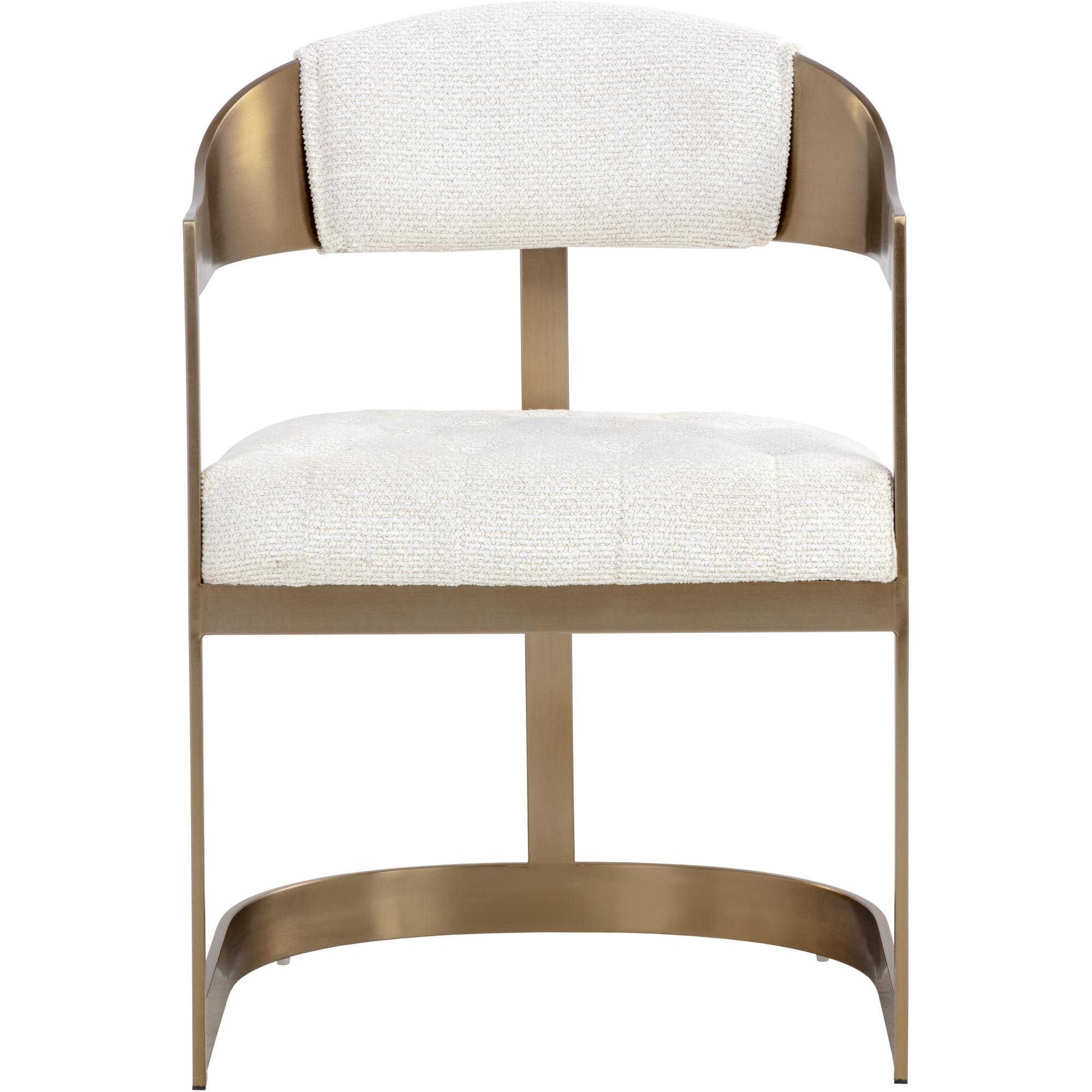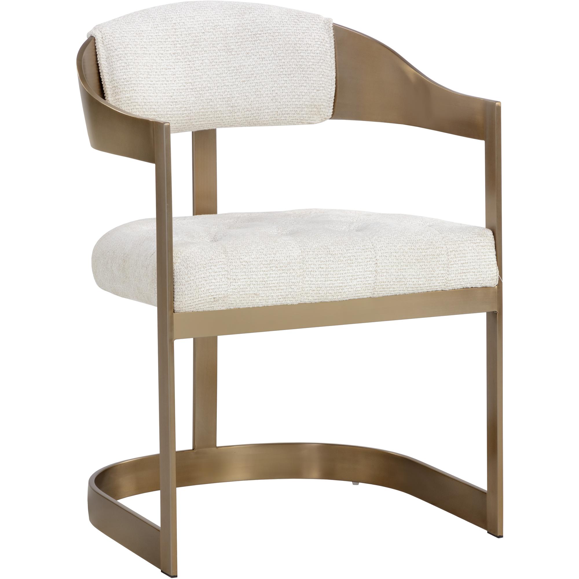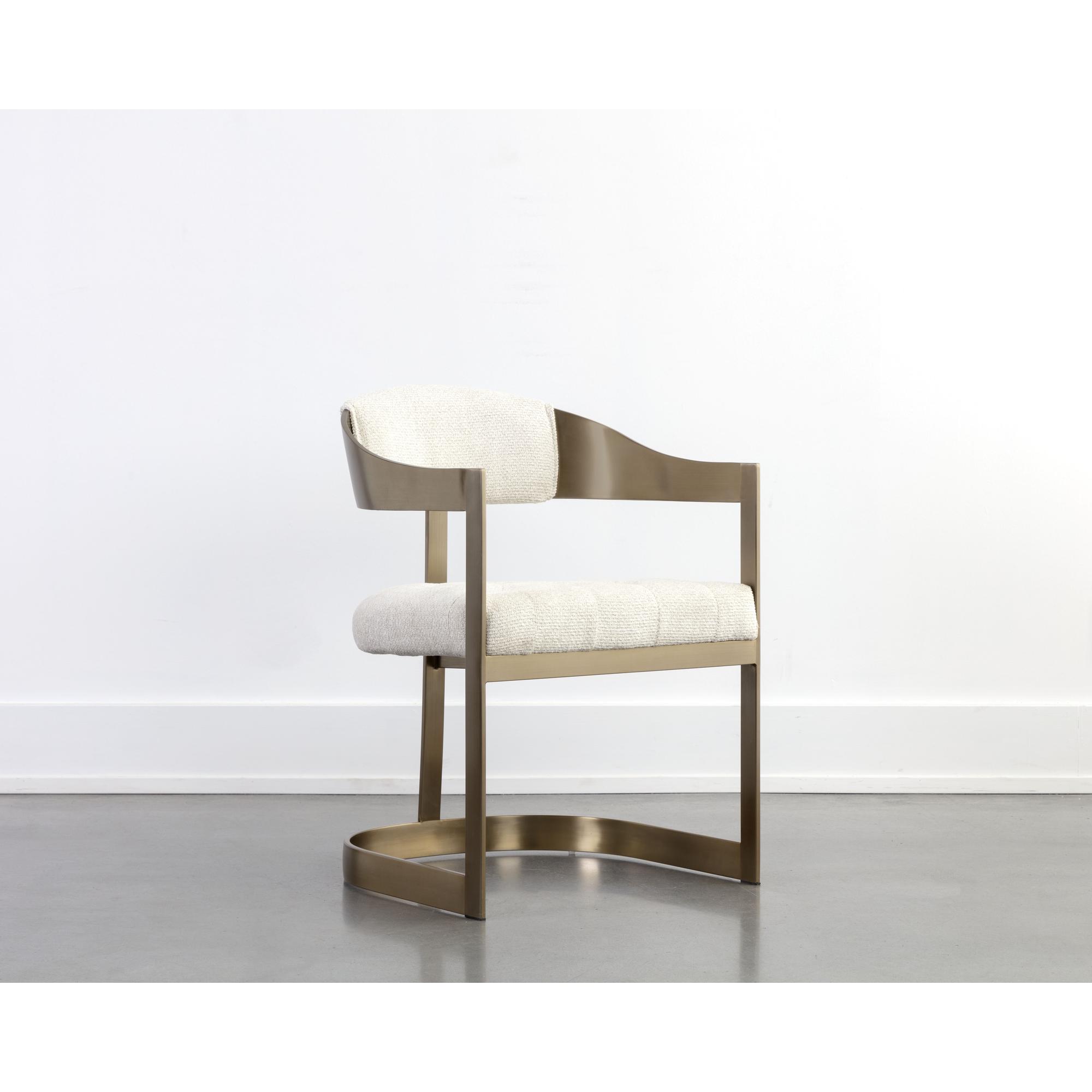 Beaumont Dining Armchair – Antique Brass – Rhea Light Barley