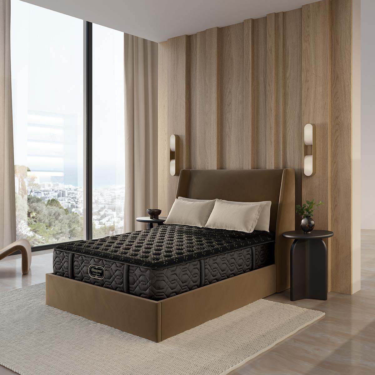 The Beautyrest Centennial Hera mattress offers a balanced combination of Sleep Climate Technology and Micro Diamond™ Memory Foam for enhanced breathability and support.