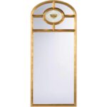 This stunning wall mirror features a durable iron frame finished in antique gold, complemented by a graceful arch atop. At its center, a diamond shape piece of alabaster adds a touch of elegance, while a charming iron bee in antique gold provides a whimsical accent.