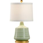 Beautiful hand painted table lamp with green and white glaze on a gold leaf mounting.