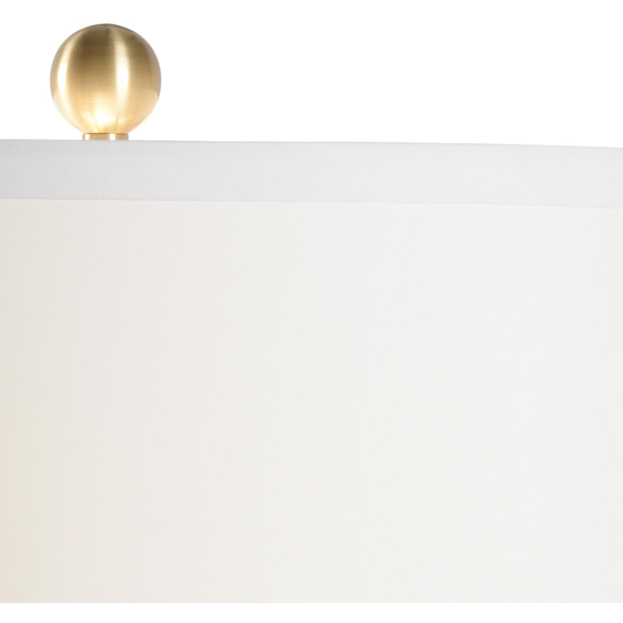 Handmade ceramic urn in blue and white glaze with an antique brass mounting.