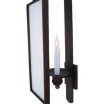 Bronze  wall electrified sconce with a rectangular tempered glass panel to add warmth and glow to a room.