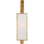 Gold leaf wall electrified sconce with a rectangular tempered glass panel to add warmth and glow to a room.