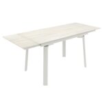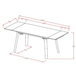 - Dimensions: Table – 55.25 (+11.75 +11.75) x 31.5 x 30″H; Chair – 24.75 x 23.5 x 34″H