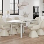 Expand your seating capacity without stress with the easy, pop-up extension leaves on this dining table. The sintered stone table is extremely durable, and sitting atop a cream-coloured metal base creates a gorgeous tone-on-tone look. Mix and match with a variety of chair styles and finishes.