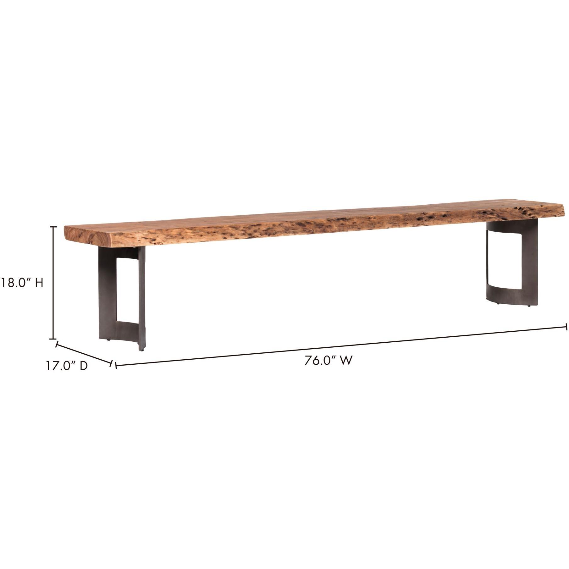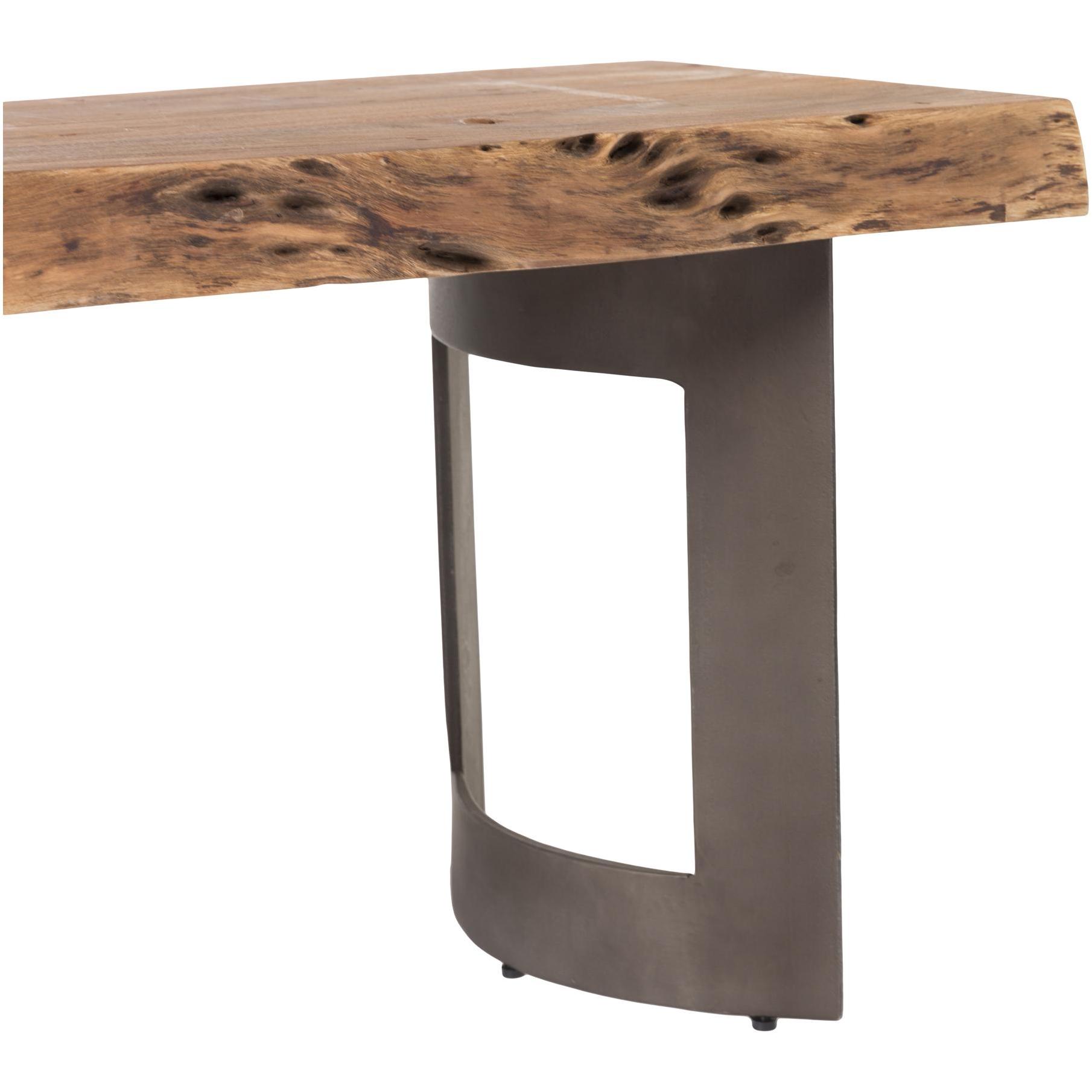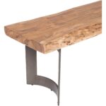 Nature did the styling here. Bent puts a live-edge acacia top front and center, letting knots, whorls, and grain stay proudly visible. Clean iron legs keep the look grounded with a light industrial edge, so the surface feels like the star. Slide it up to a dining table for extra seating, park it in an entryway, or use it as a flexible perch anywhere you need an easy, warm landing spot day after day, too.
