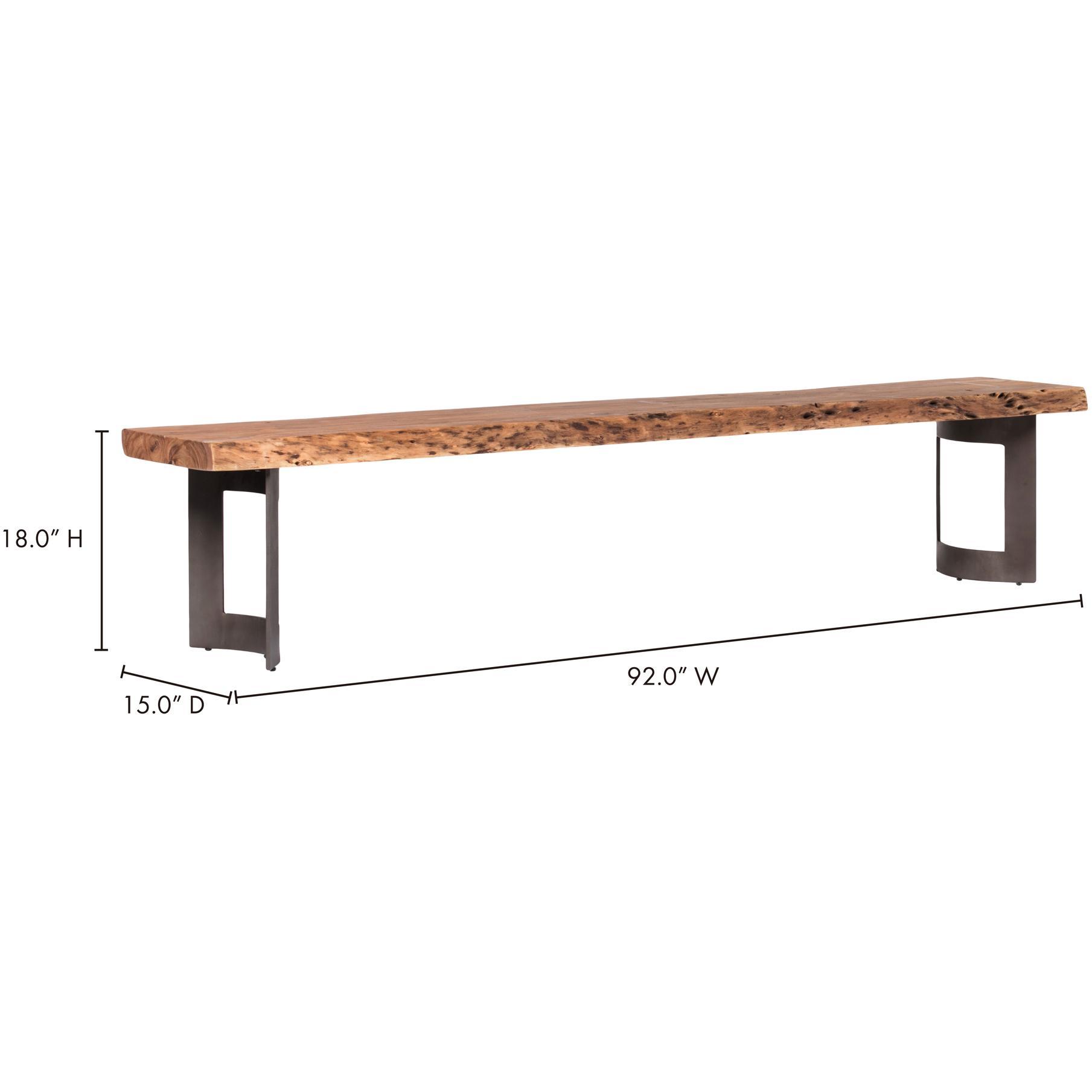 Nature did the styling here. Bent brings solid acacia front and center, with a live-edge top that keeps the knots and whorls visible and one-of-a-kind. The look lands somewhere between warm and industrial, thanks to the iron base that keeps everything feeling clean and straightforward. Pull it up to the dining table for extra seating, use it in an entryway for an easy landing spot, or pair it with the rest of the Bent collection to keep the whole room connected.
