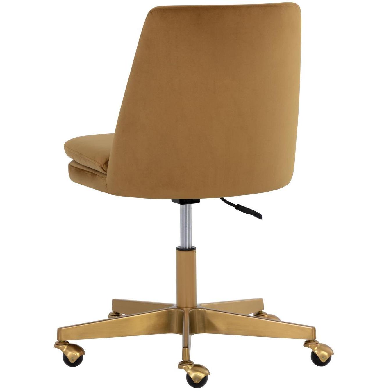 Infuse a touch of glamour to any workspace with this fabulous modern office chair. Stocked in gold sky fabric and completed with a matte gold stainless steel base. Castors complete the look for added mobility. Also available in mina ivory fabric.