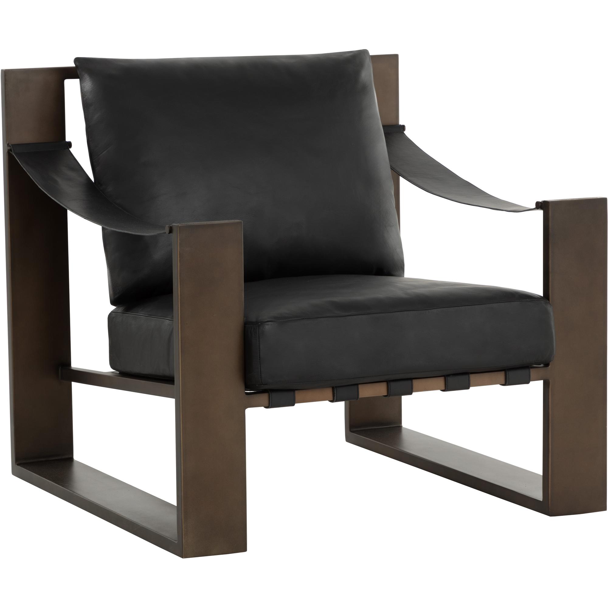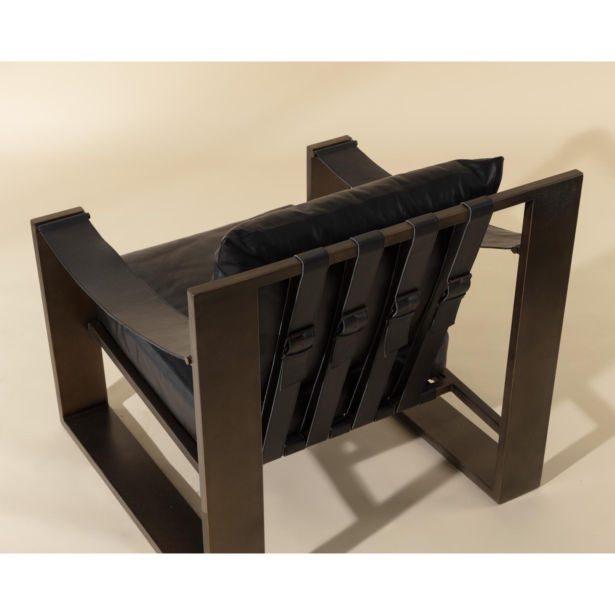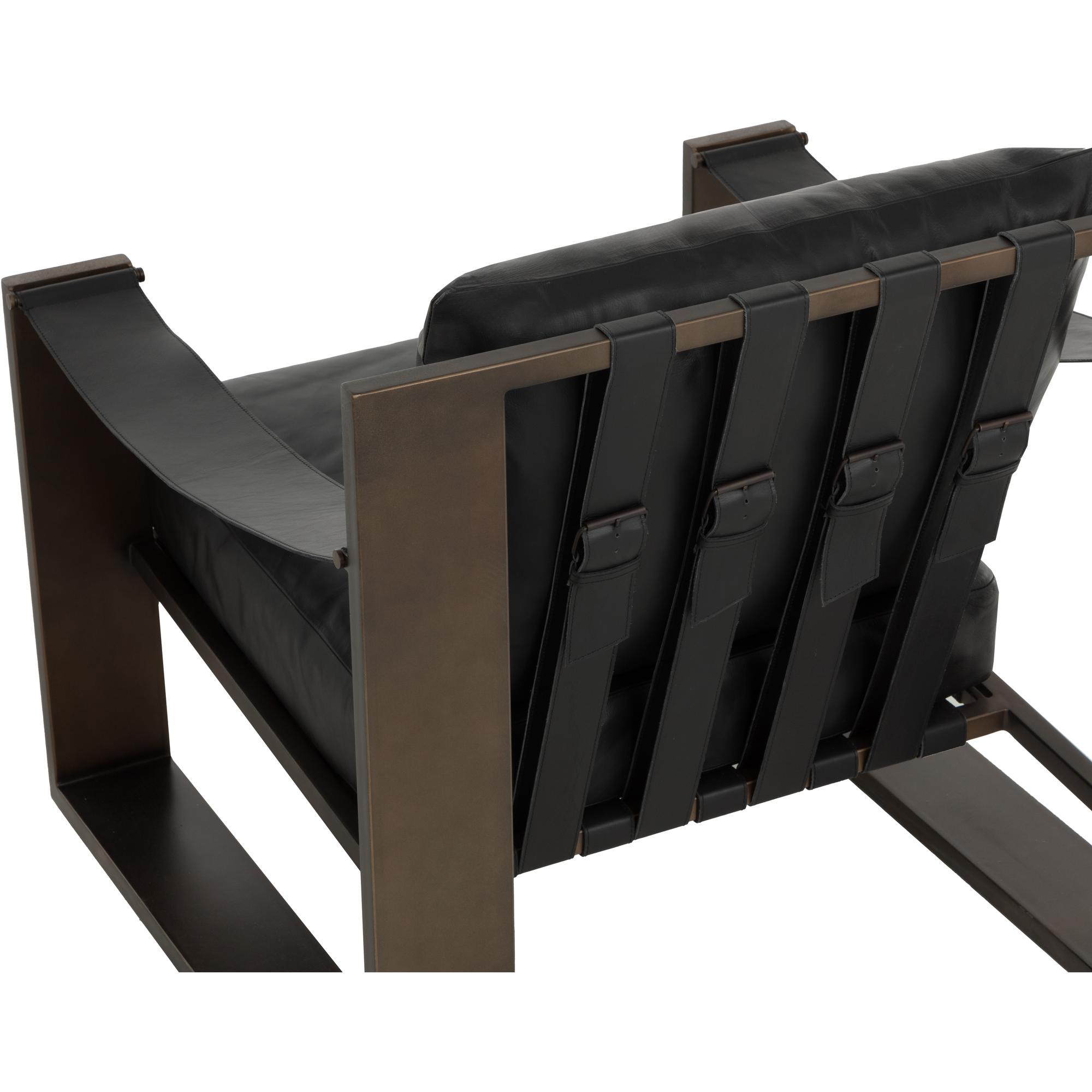 Berke Lounge Chair – Antique Bronze – Charcoal Black Leather