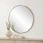 The Bern 40″ Tall Round Irregular Mirror in Antique Brushed Brass is a stunning addition to any room. Its beautiful design incorporates an irregular shape and antique brushed brass finish for a vintage, yet modern aesthetic. The high-quality and durable cast iron frame ensure that it is built to last and can be passed down through generations. The abstract-shaped mirror adds intrigue and modern flair to any room, making it the perfect centerpiece. It also comes equipped with a D-Ring hanging system for easy installation and is also equipped for four-way hanging, providing versatile display options. Whether placed in a bedroom, dressing room, or foyer, the Bern 40″ Tall Round Irregular Mirror is sure to impress.