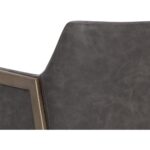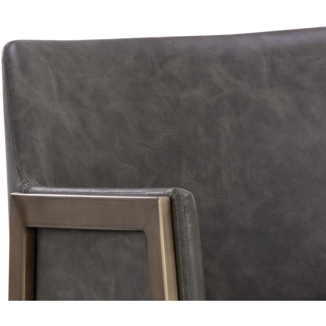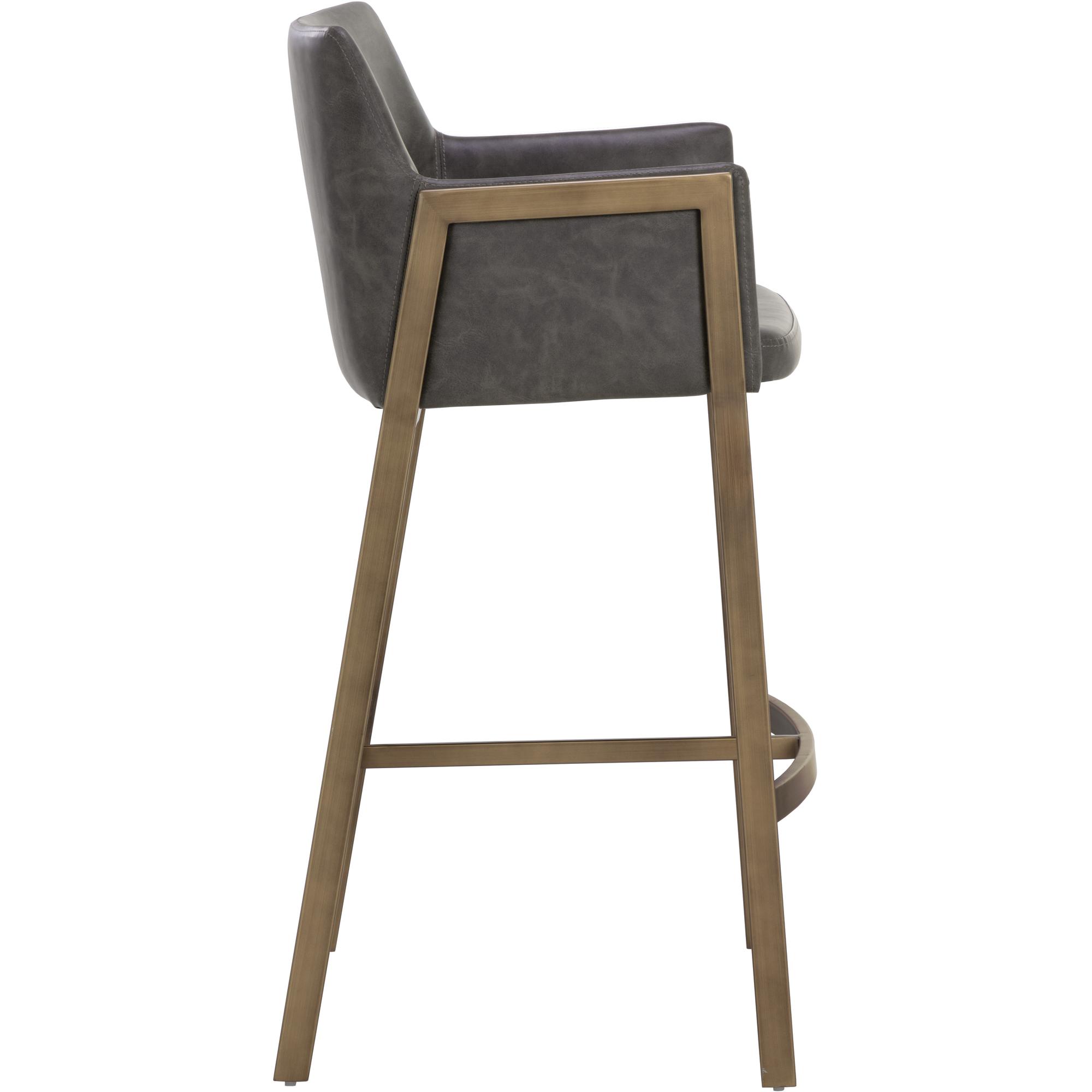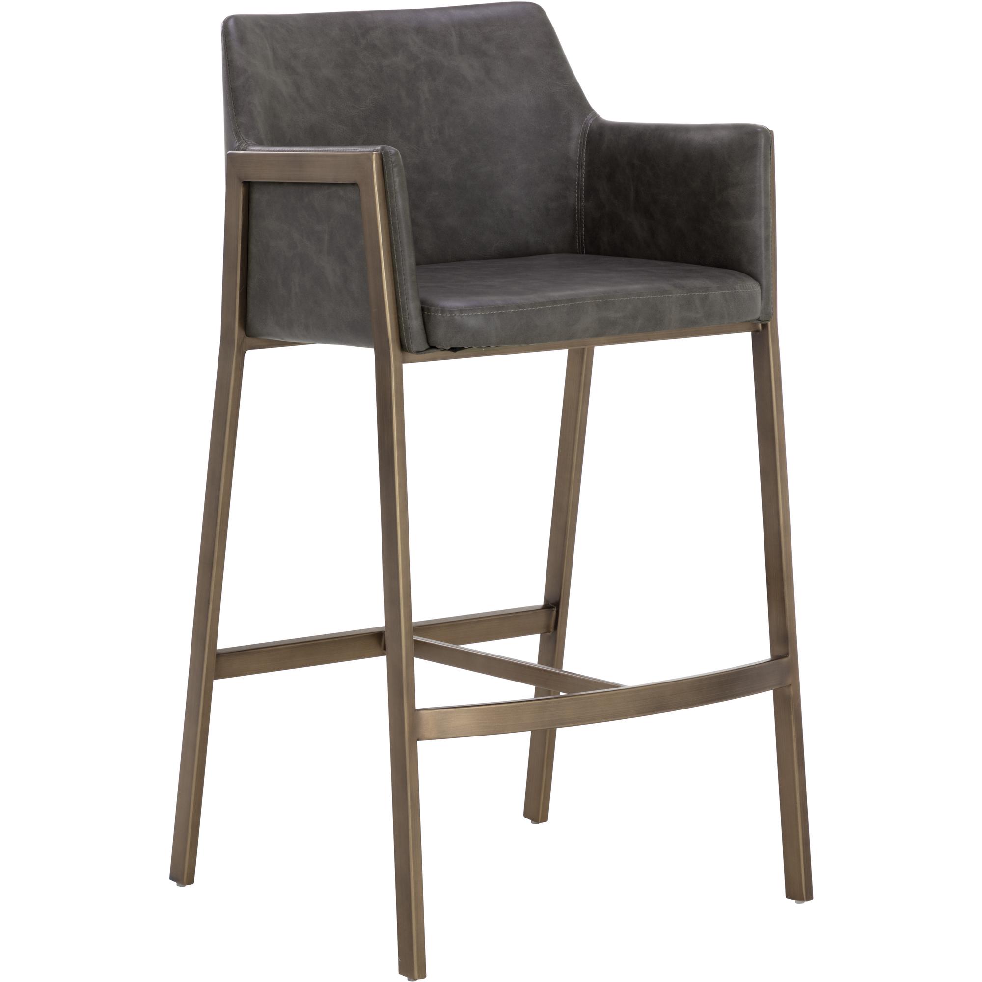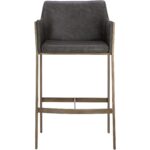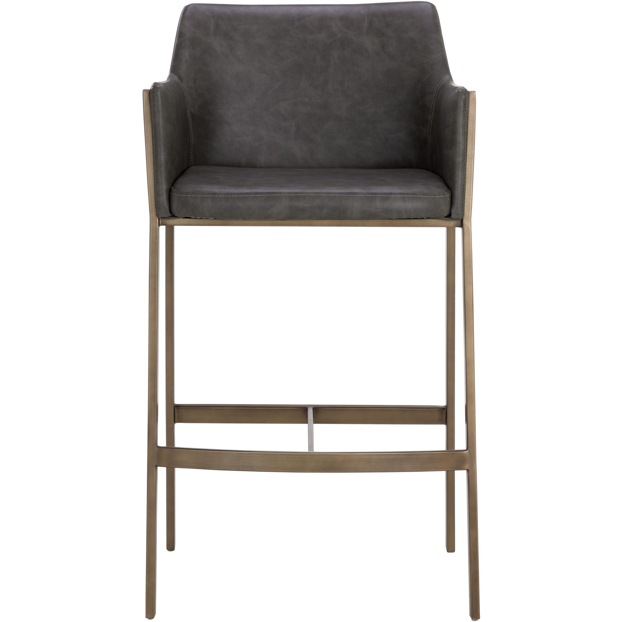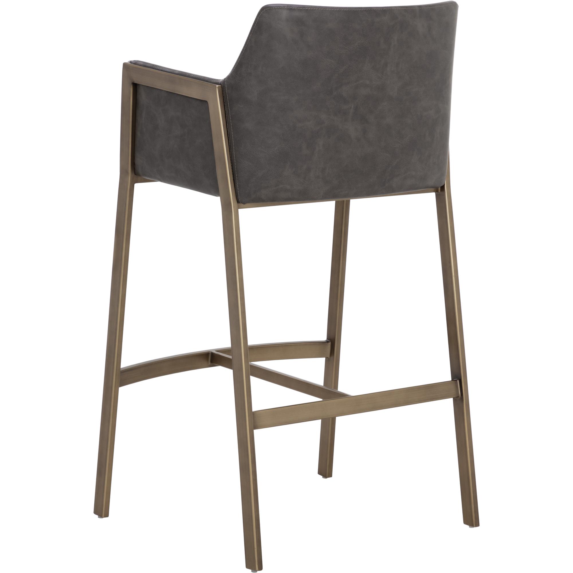 The Bernadette Barstool features a shapely design with a powder-coated antique brass frame. Upholstered in kendall grey faux leather for added style and durability. Handle With Care: This design has been crafted with faux leather. Faux leather is manufactured to reflect the natural characteristics of leather; as such, colour variations, markings wrinkles, grooves, and light scratches are appreciated characteristics. No two pieces will be alike. Visit our Product Care page for more information on how to ensure the lasting beauty of this piece.