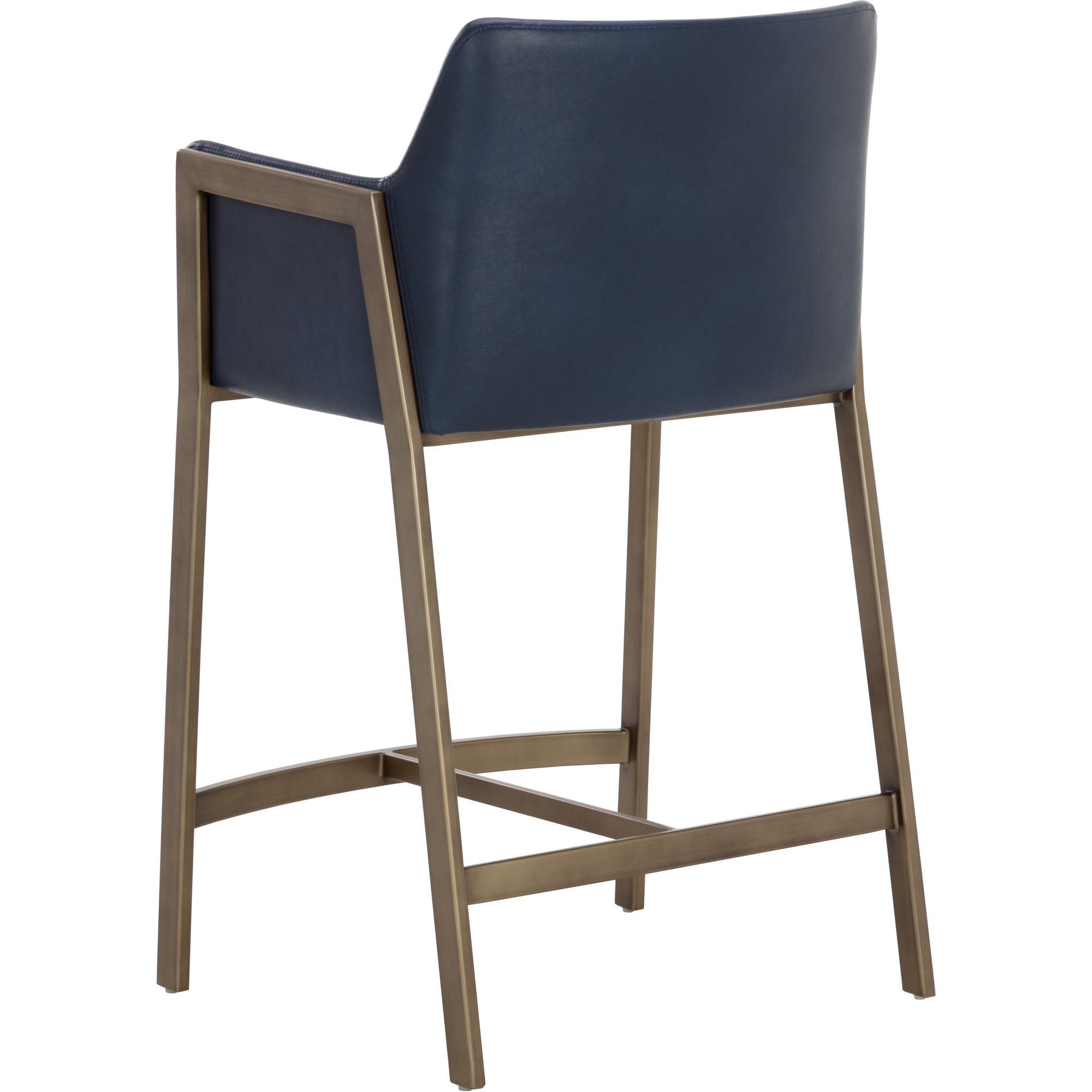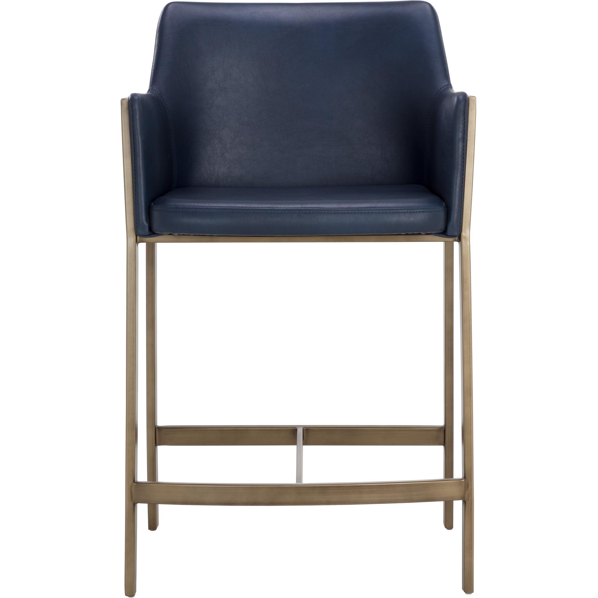 The Bernadette Counter Stool features a shapely design with a powder-coated antique brass frame. Upholstered in bravo admiral faux leather for added style and durability. Handle With Care: This design has been crafted with faux leather. Faux leather is manufactured to reflect the natural characteristics of leather; as such, colour variations, markings wrinkles, grooves, and light scratches are appreciated characteristics. No two pieces will be alike. Visit our Product Care page for more information on how to ensure the lasting beauty of this piece.