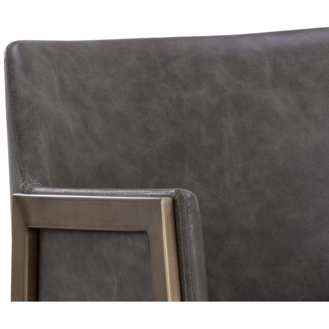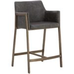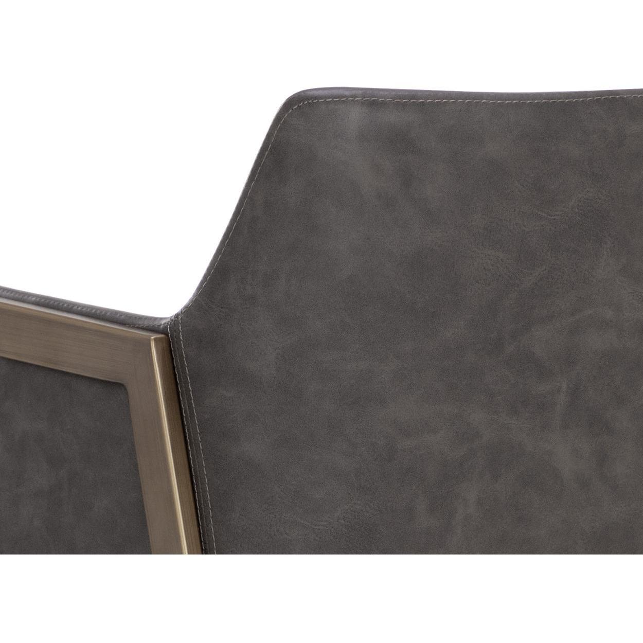 The Bernadette Counter Stool features a shapely design with a powder-coated antique brass frame. Upholstered in kendall grey faux leather for added style and durability. Handle With Care: This design has been crafted with faux leather. Faux leather is manufactured to reflect the natural characteristics of leather; as such, colour variations, markings wrinkles, grooves, and light scratches are appreciated characteristics. No two pieces will be alike. Visit our Product Care page for more information on how to ensure the lasting beauty of this piece.