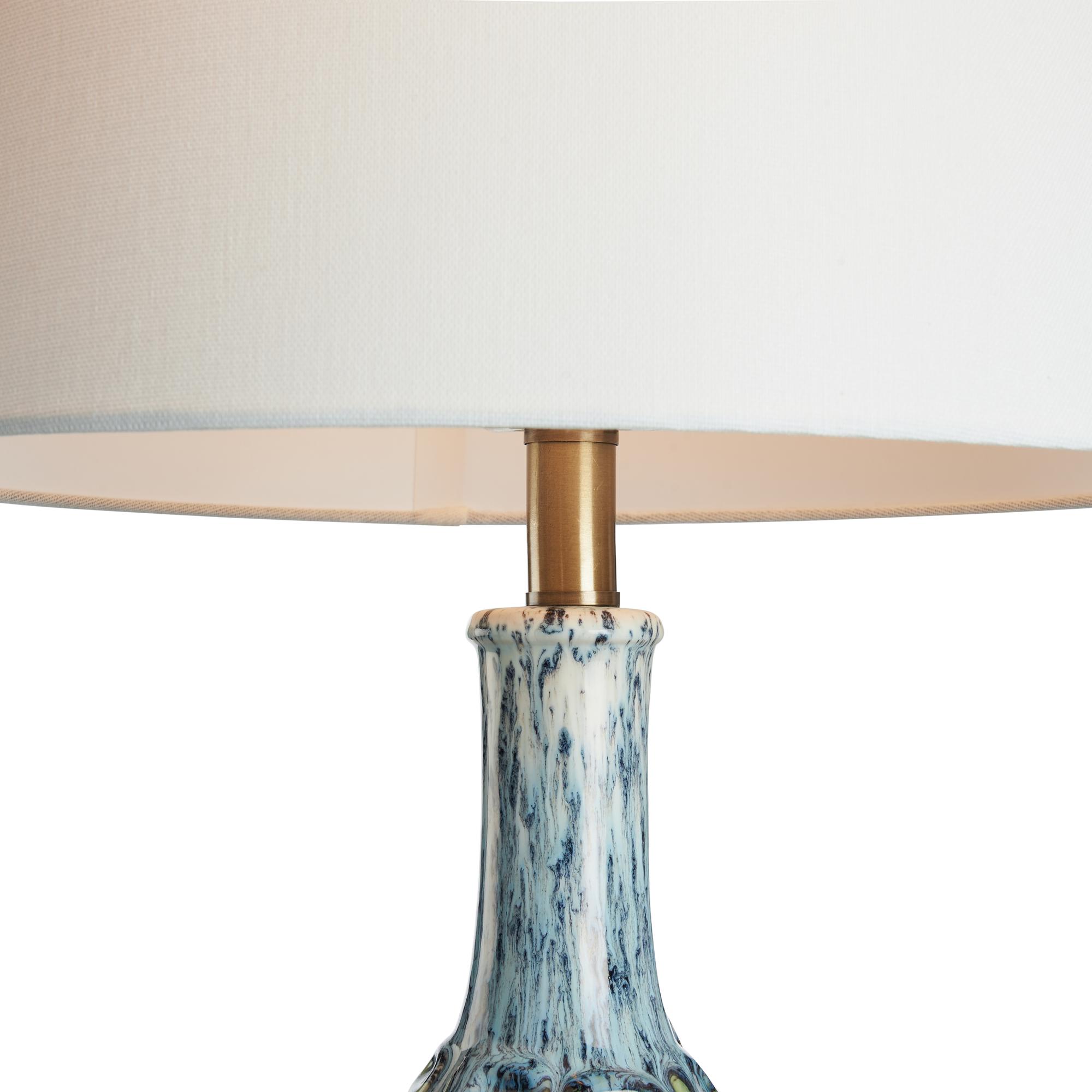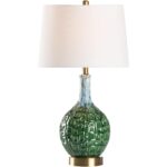 Vintage inspired ceramic form with mid-century textural design in green. Brushed brass finished base with a USB port.
