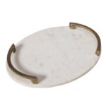 Adding a stylish decorative tray to a room is an effective way to show off your design savvy. This piece is crafted from Banswara marble, known for its lustrous quality and enduring style that gets an extra shot of beauty thanks to antique brass-plated handles. Feature it on any furniture piece as the base of a beautiful vignette for a quick and easy update in any room.