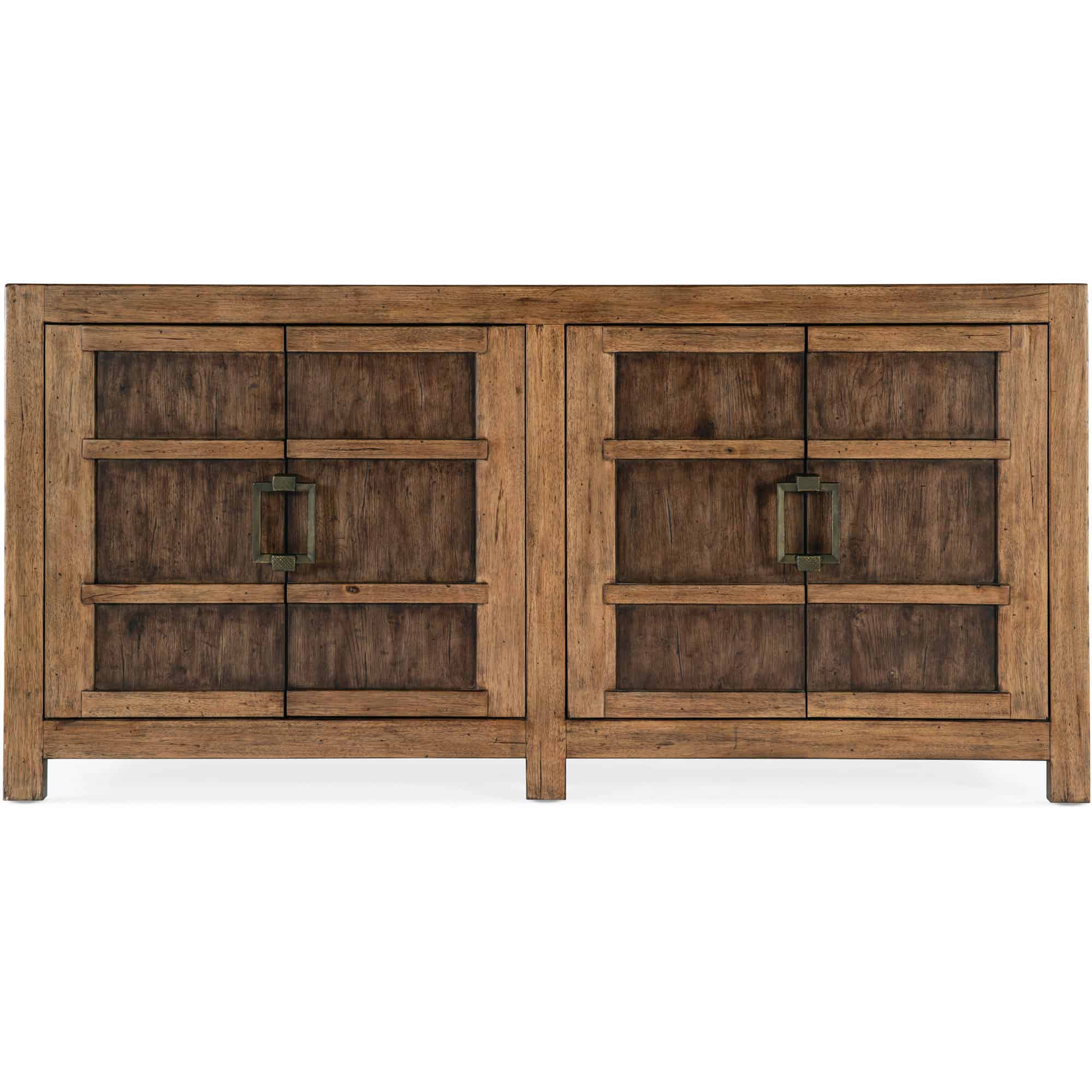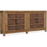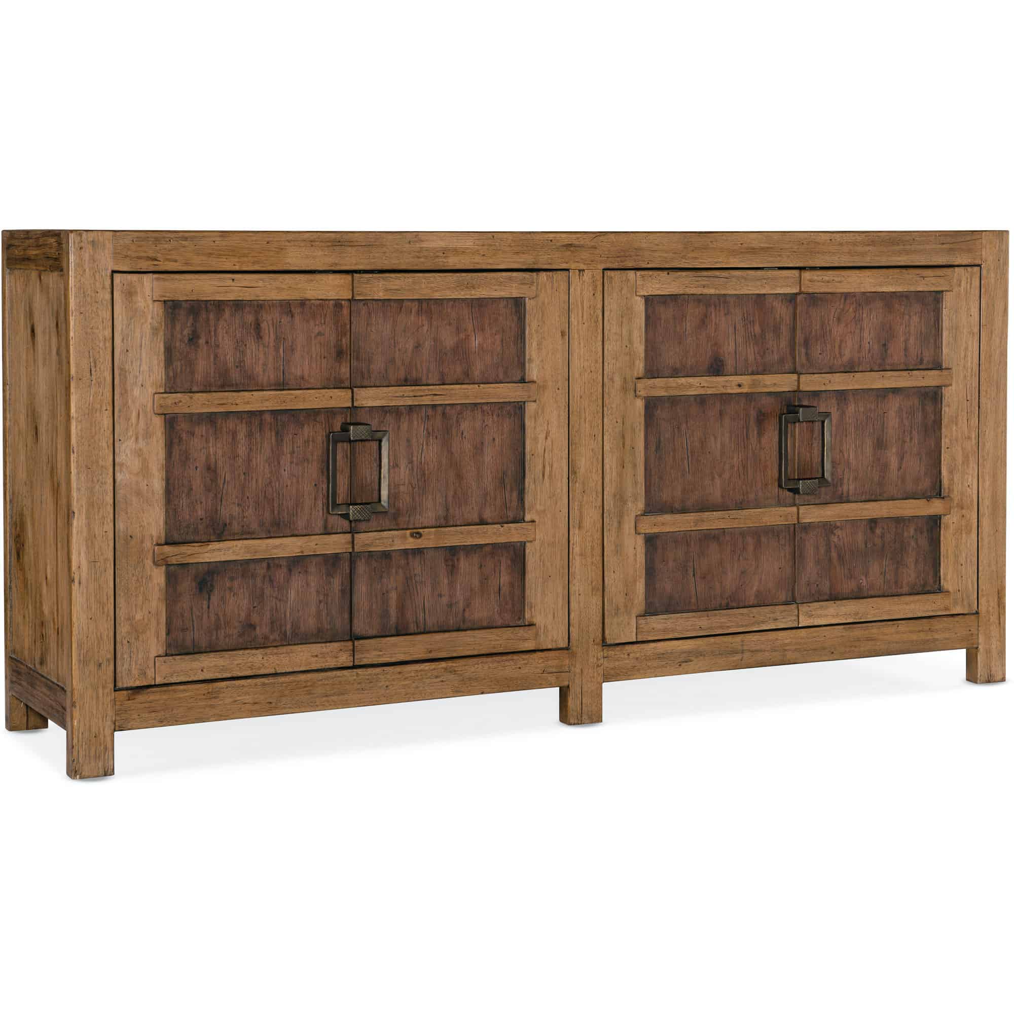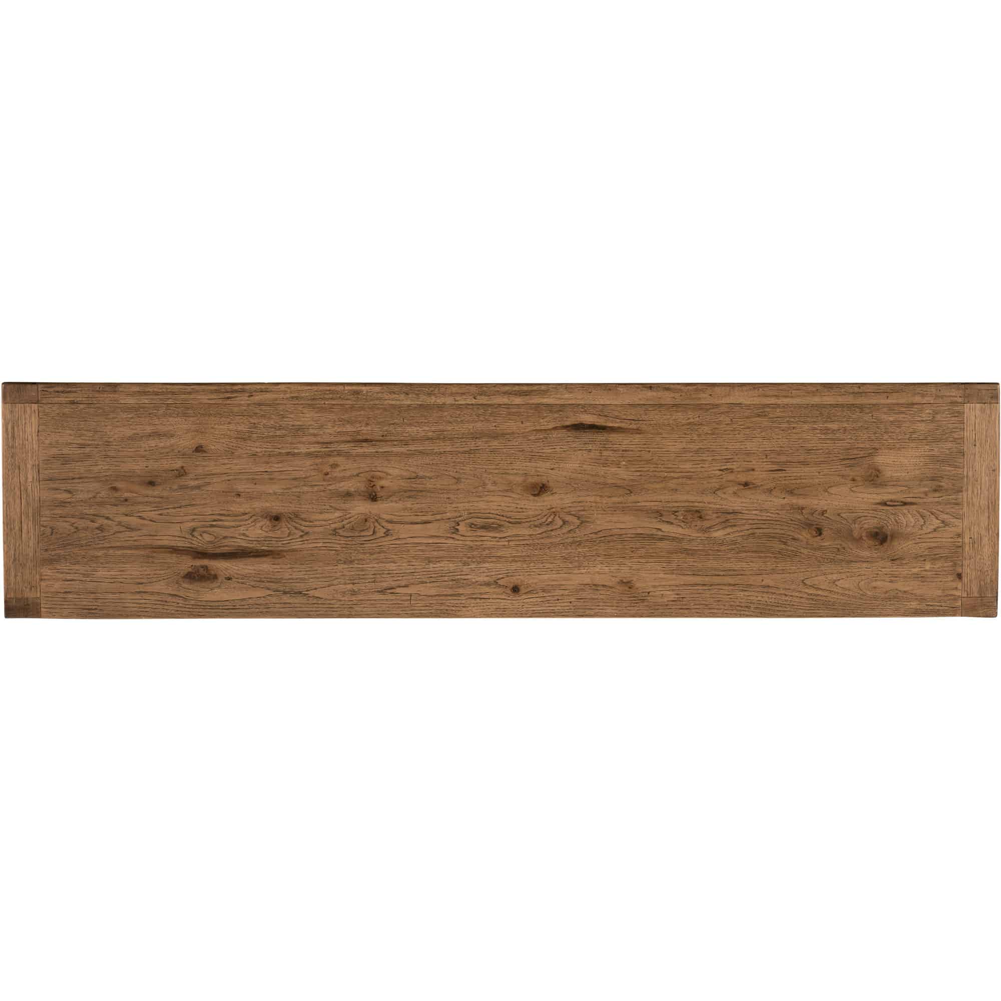 Finish: Vintage Natural: a warm, rustic, organic finish over hickory veneers. Distressing includes chopping, rock, drawknife, gauging, chain distressing and wire brush. Charred Timber on the interior: inspired by the restorative beauty of a fire-ravaged forest. Distressing includes worm holes, rasping, gauging, plane shock, hand plane, drawknife, wire brush and screw head.