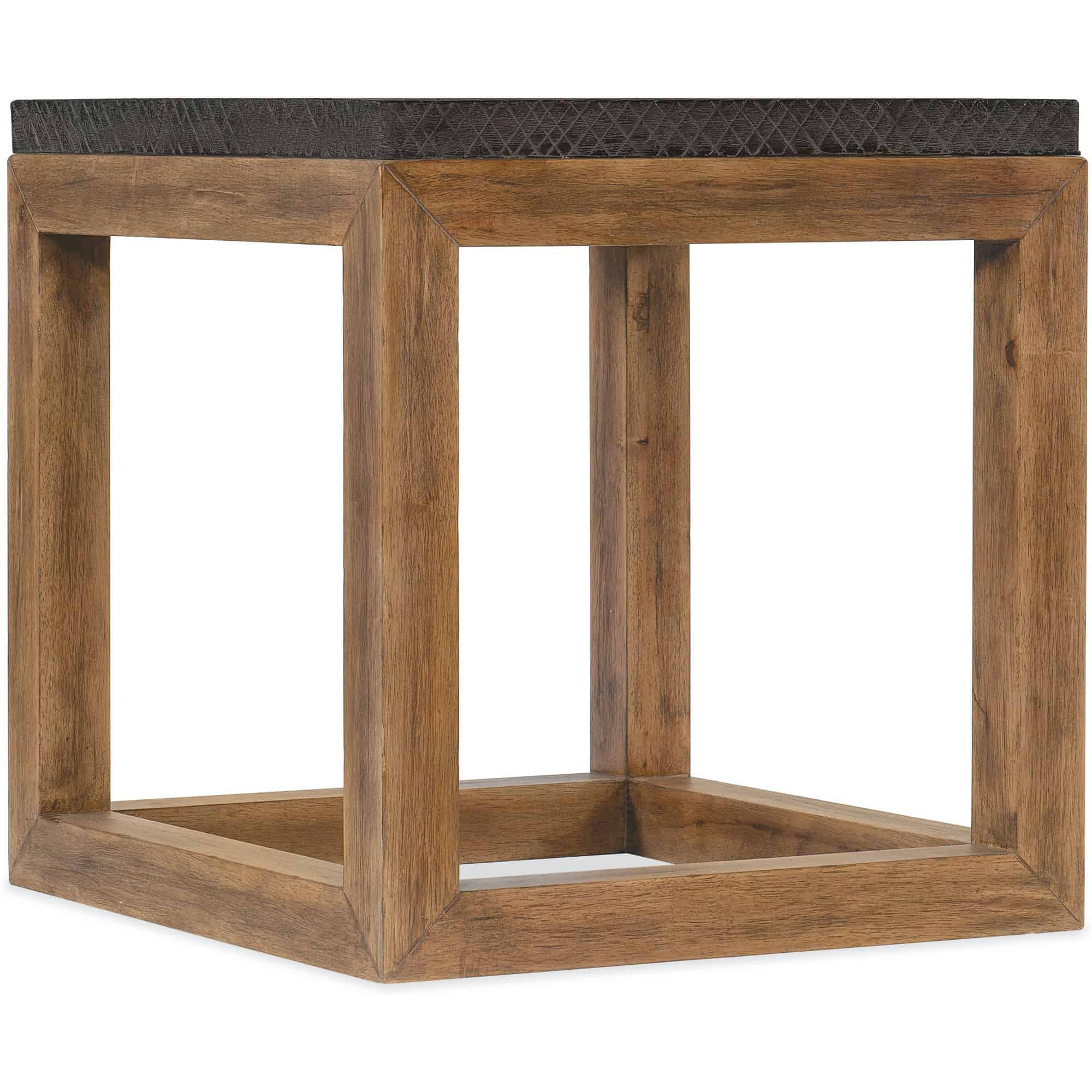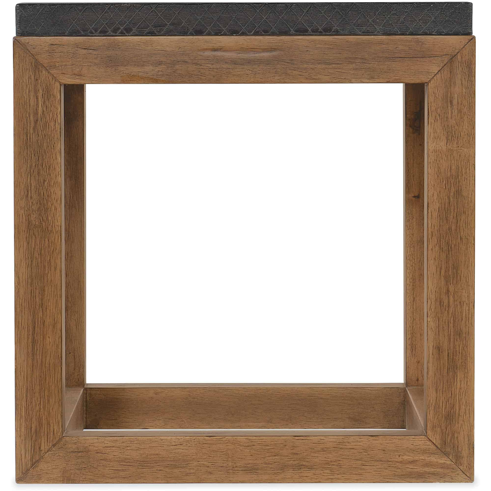 Finish: Vintage Natural base: a warm, rustic, organic finish over hickory veneers. Furrowed Bark top: a charcoal finish with a crosshatch texture. Distressing includes chopping, rock, drawknife, gauging, chain distressing and wire brush.