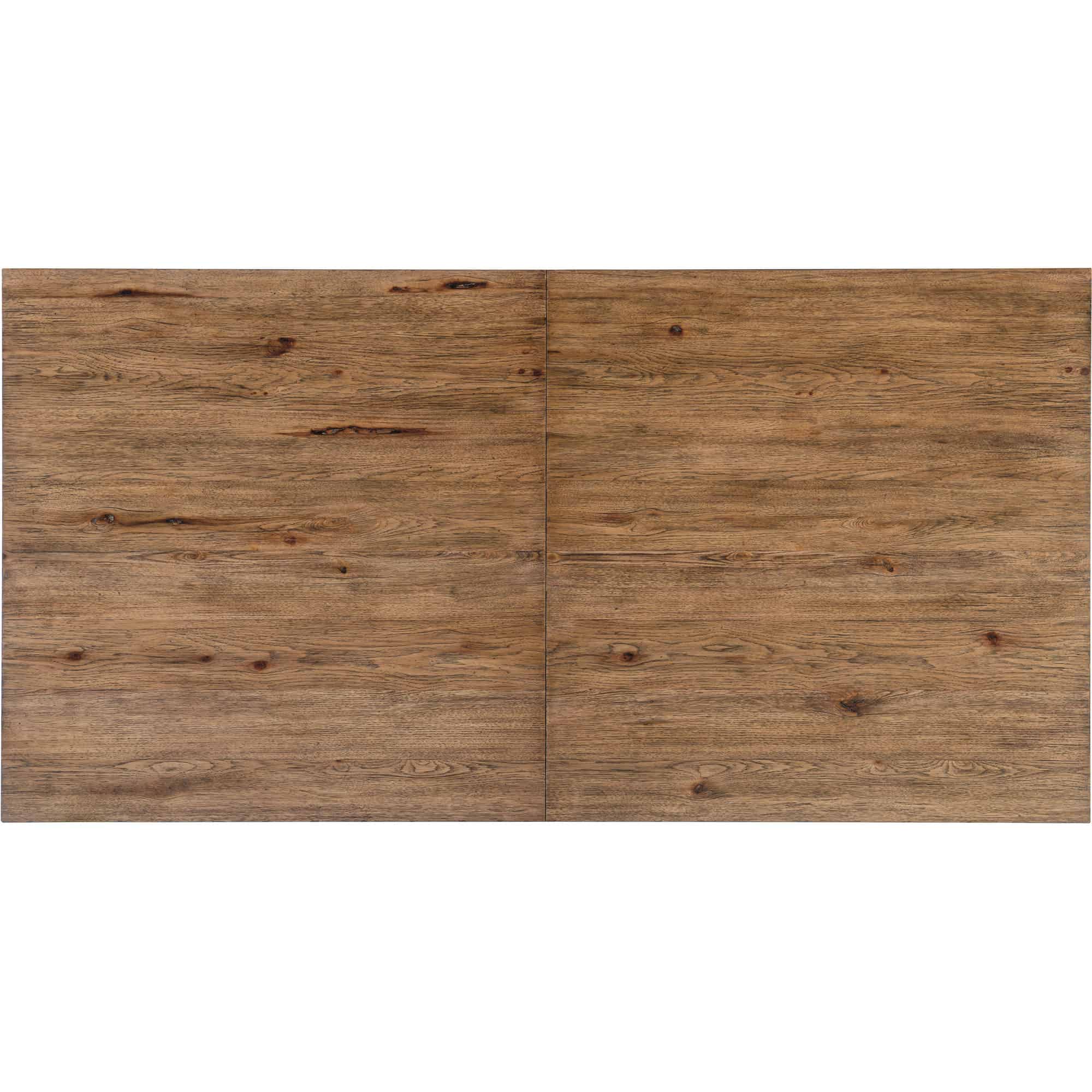 Finish: Vintage Natural: a warm, rustic, organic finish over hickory veneers. Distressing includes chopping, rock, drawknife, gauging, chain distressing and wire brush.