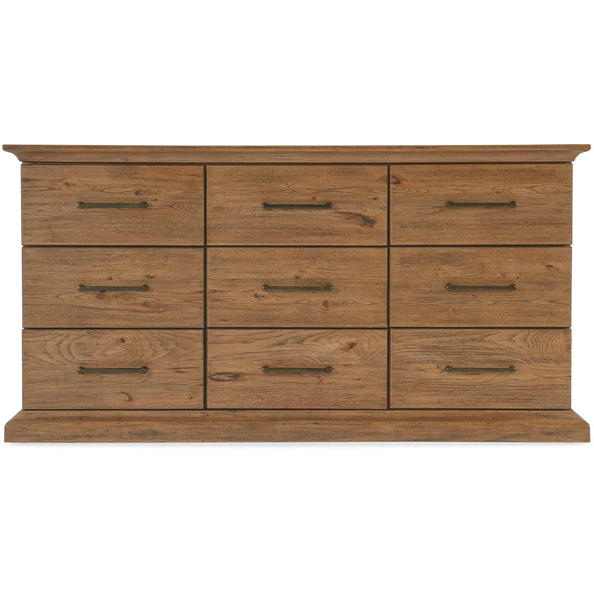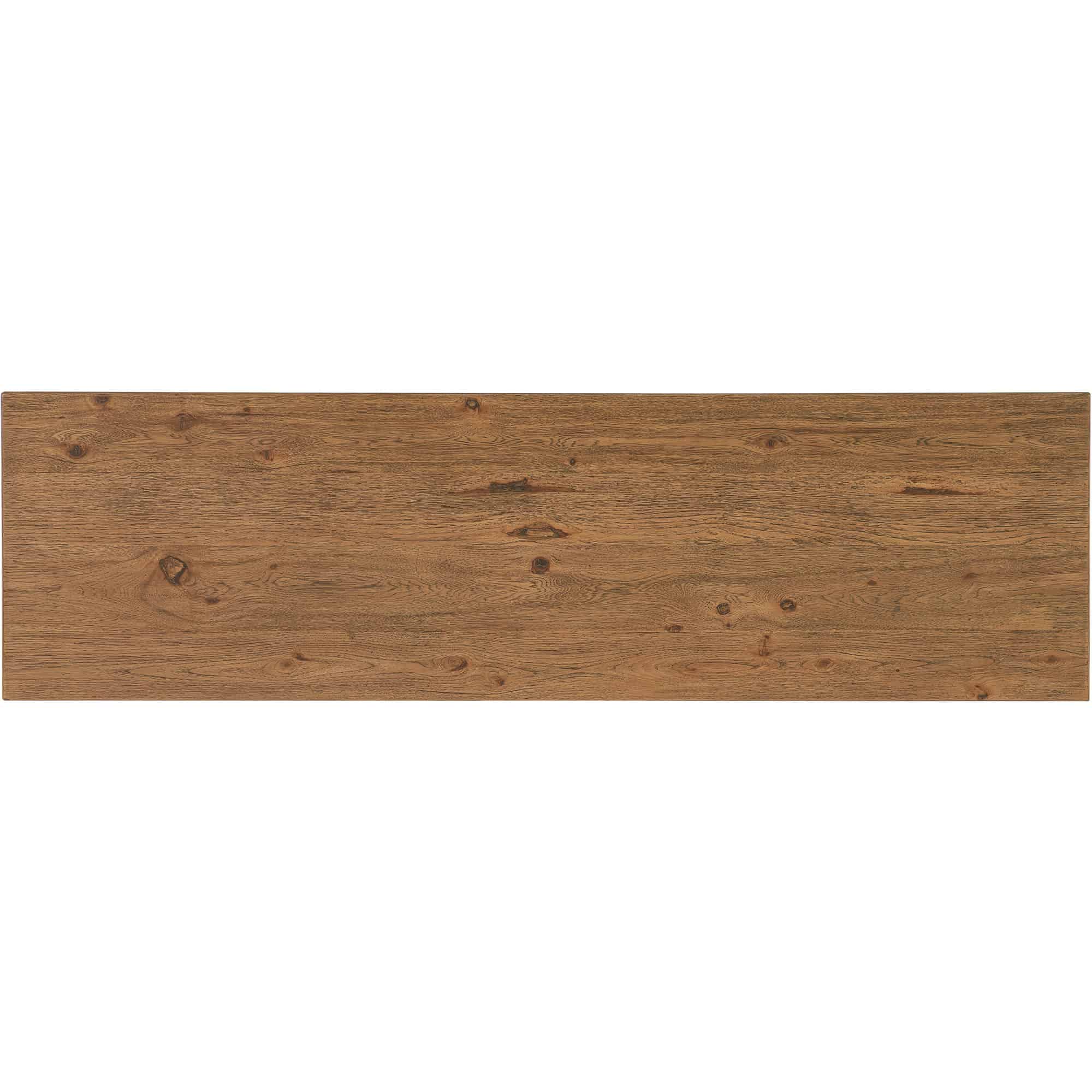 Finish: Vintage Natural: a warm, rustic, organic finish over hickory veneers. Distressing includes chopping, rock, drawknife, gauging, chain distressing and wire brush. Dark brushed bronze bar pulls.