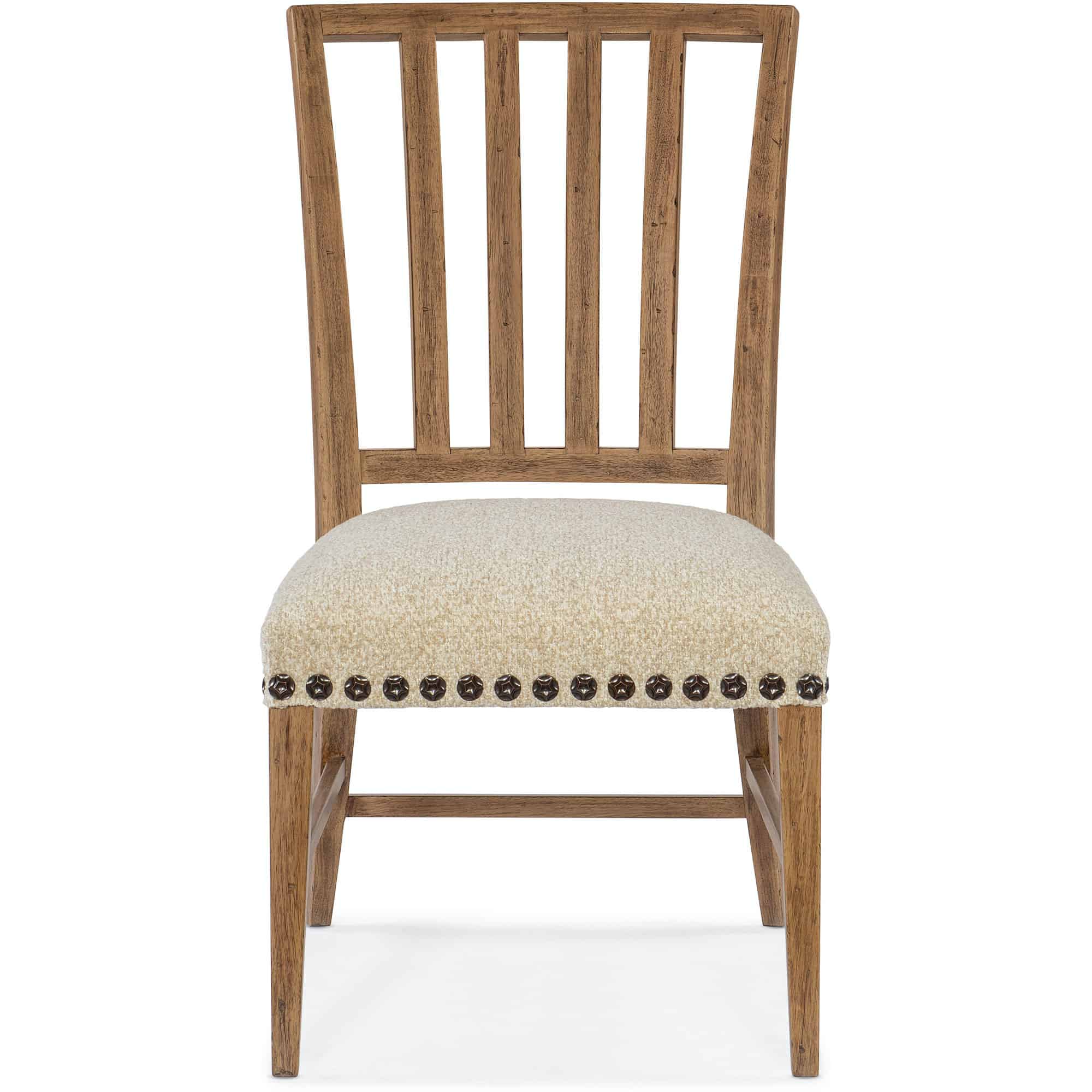 Features: Fabric seat Spindle back Nailhead trim Tack in floor glide