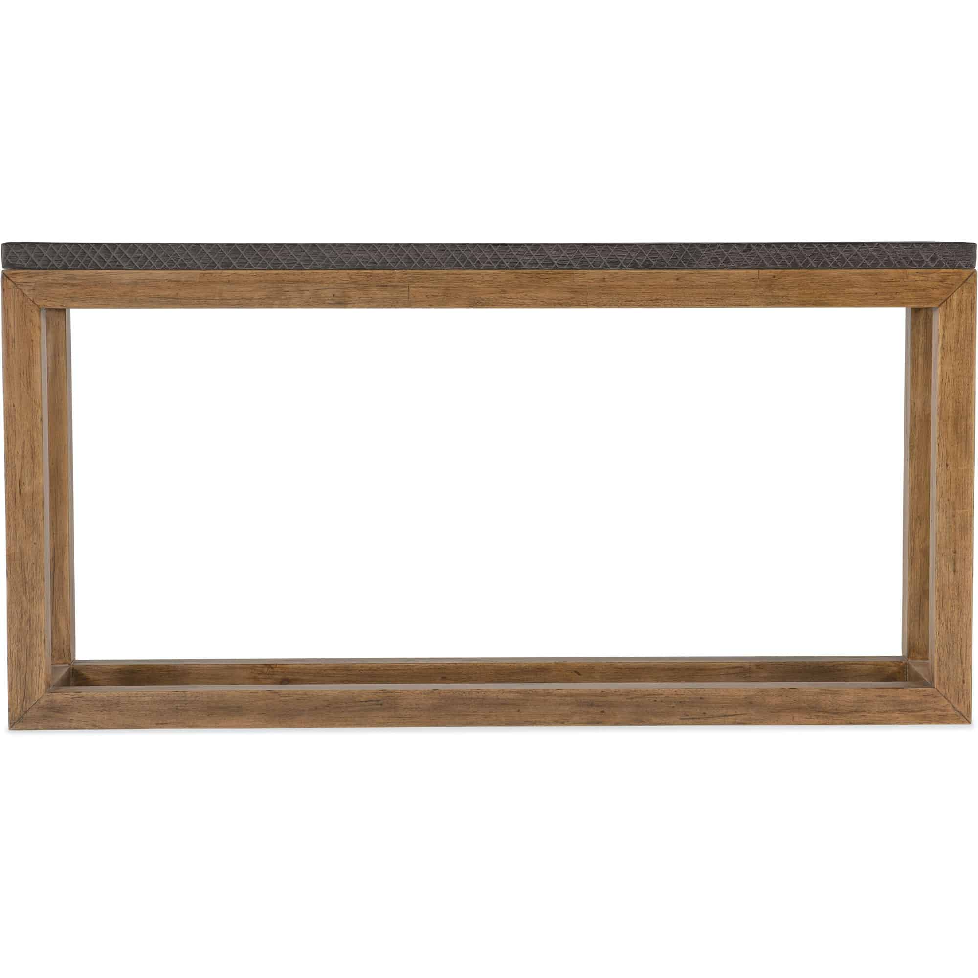 Finish: Vintage Natural base: a warm, rustic, organic finish over hickory veneers. Furrowed Bark top: a charcoal finish with a crosshatch texture. Distressing includes chopping, rock, drawknife, gauging, chain distressing and wire brush.