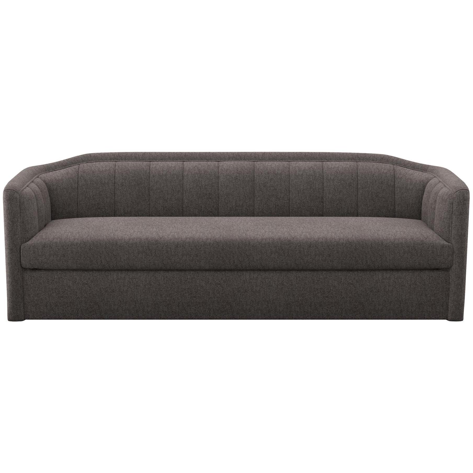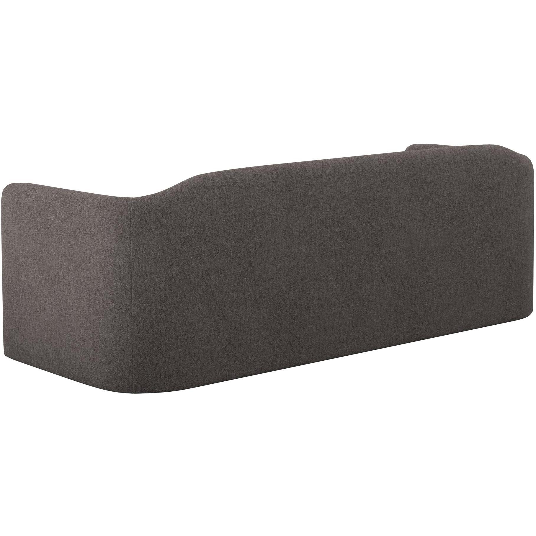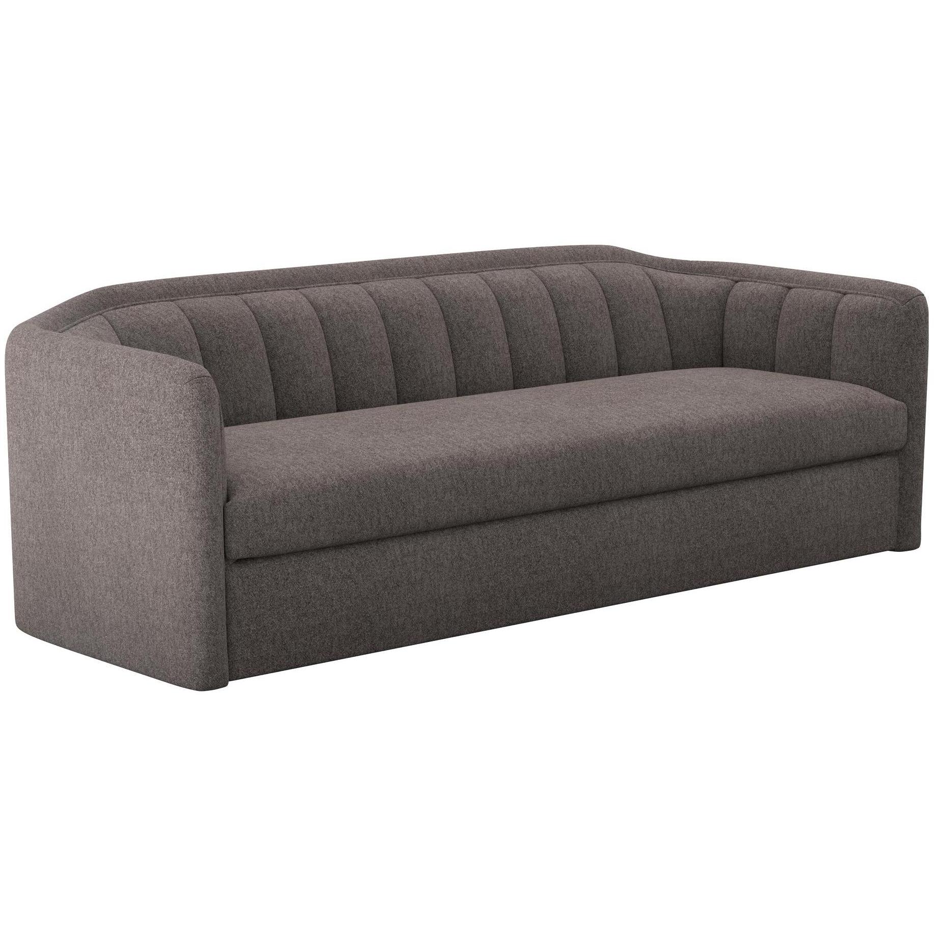 Introduce lavish comfort to any space with this contemporary sofa. Stocked in alaska hedgehog brown performance fabric. Features vertical tufting on the interior. Performance fabric is moisture repellent, durable and easy to clean.