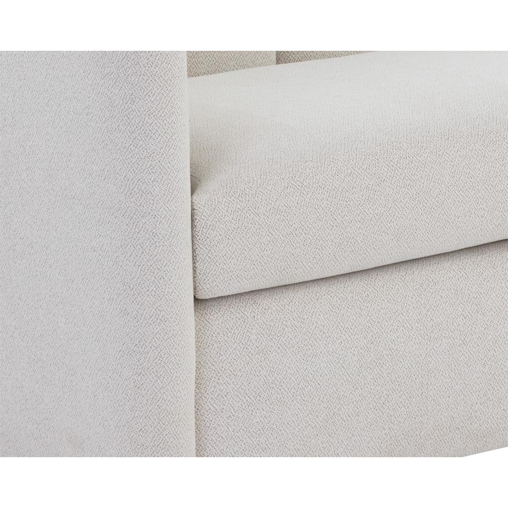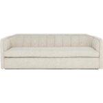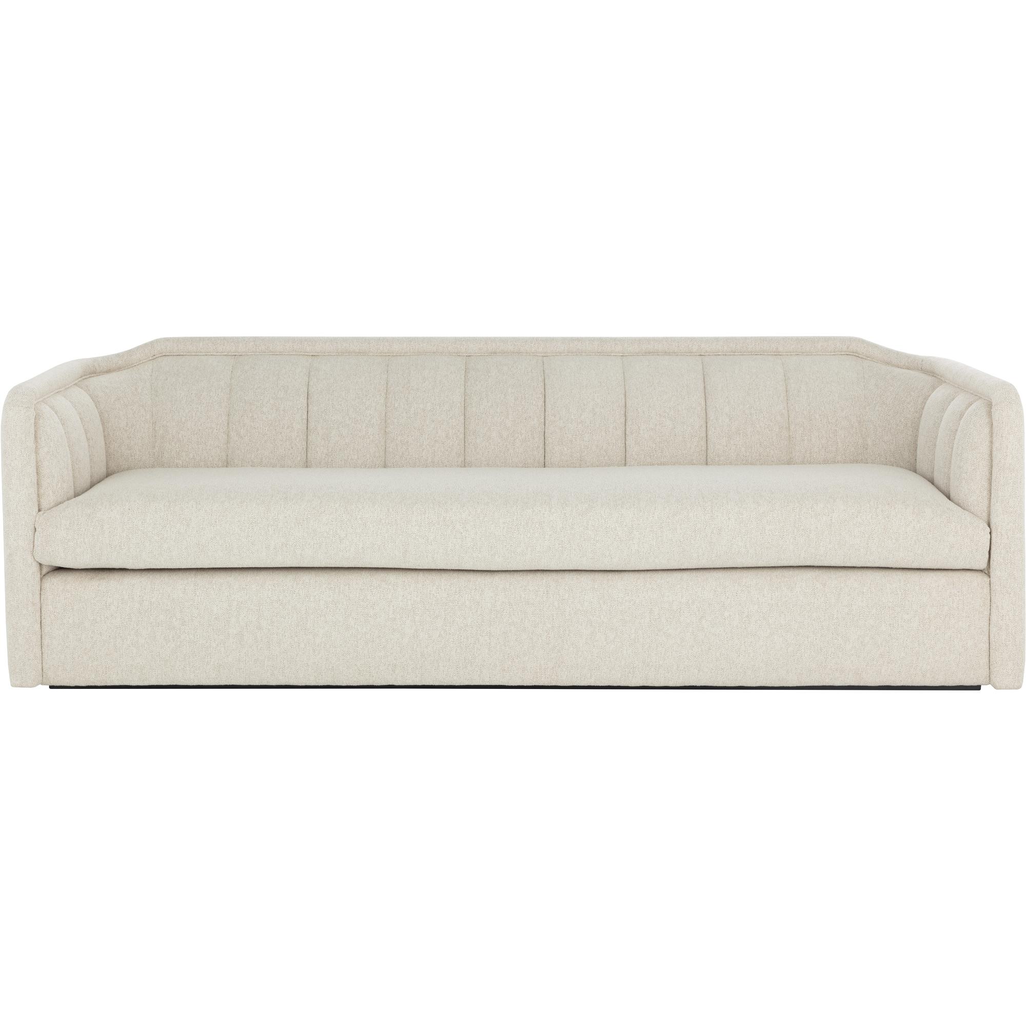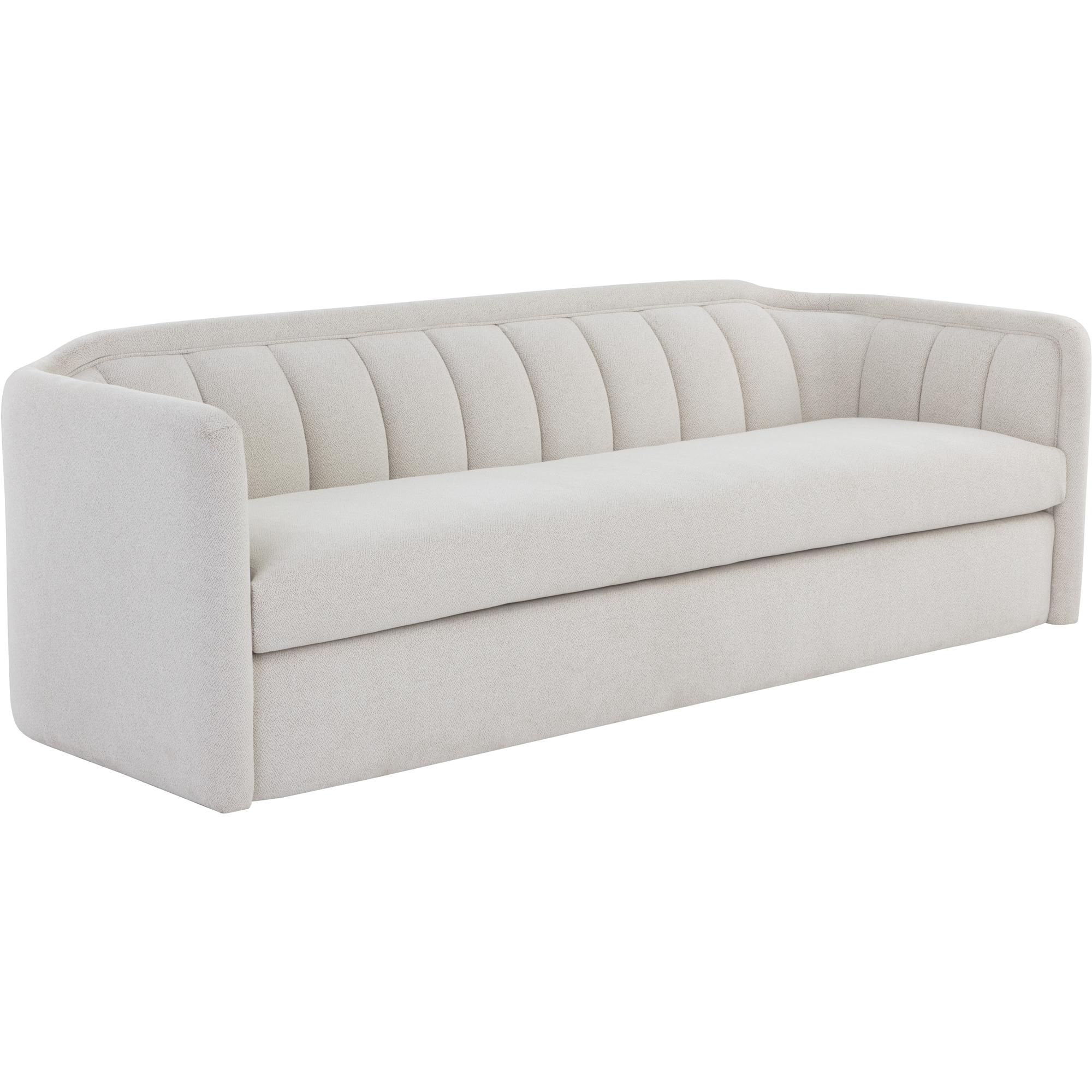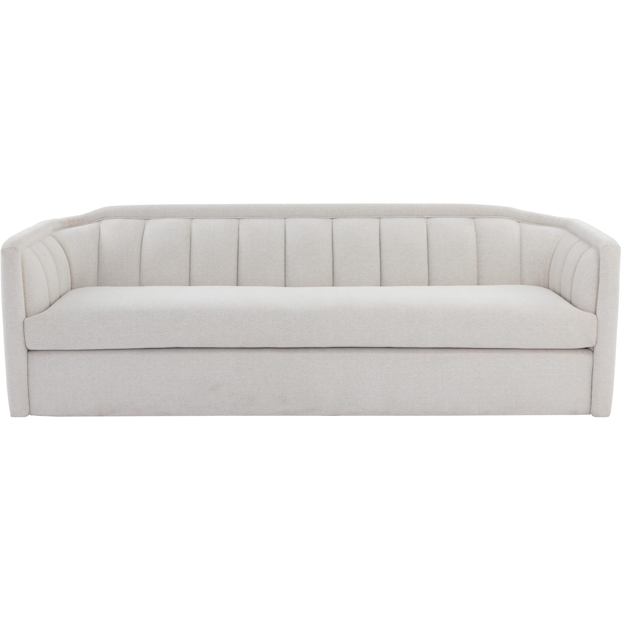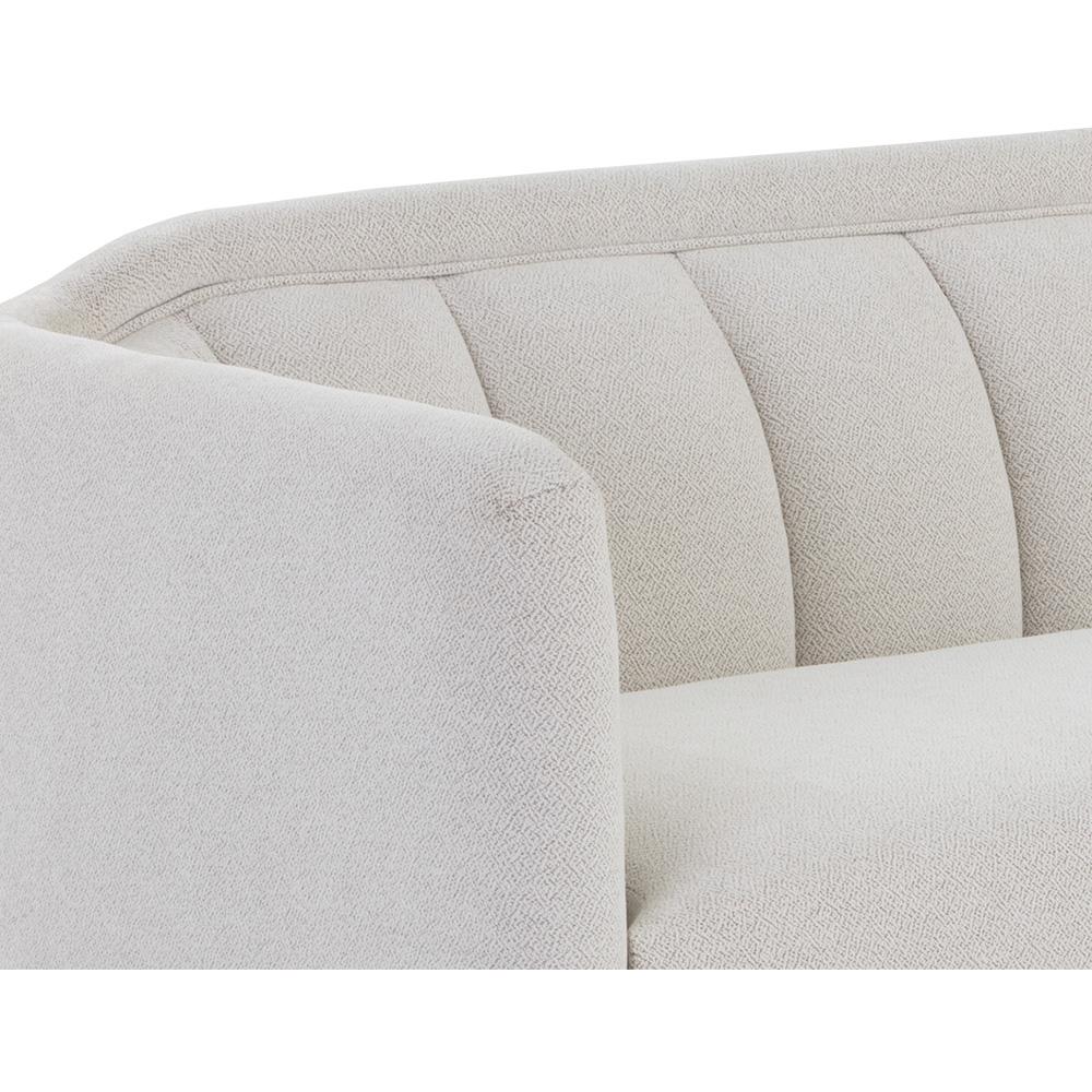 Introduce lavish comfort to any space with this contemporary sofa. Upholstered in a dove cream fabric with vertical tufting on the interior. Performance fabric is moisture repellent, durable and easy to clean.