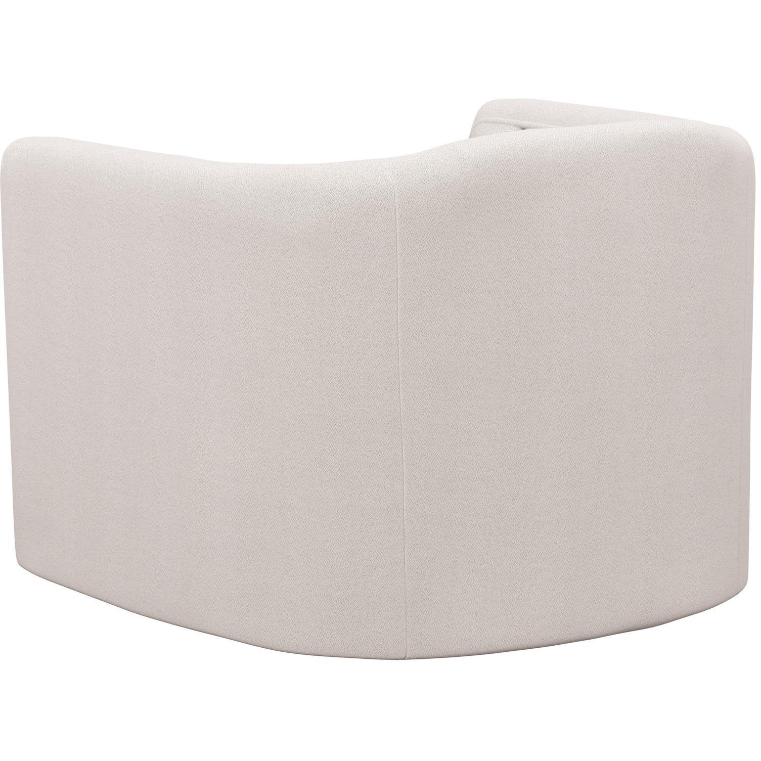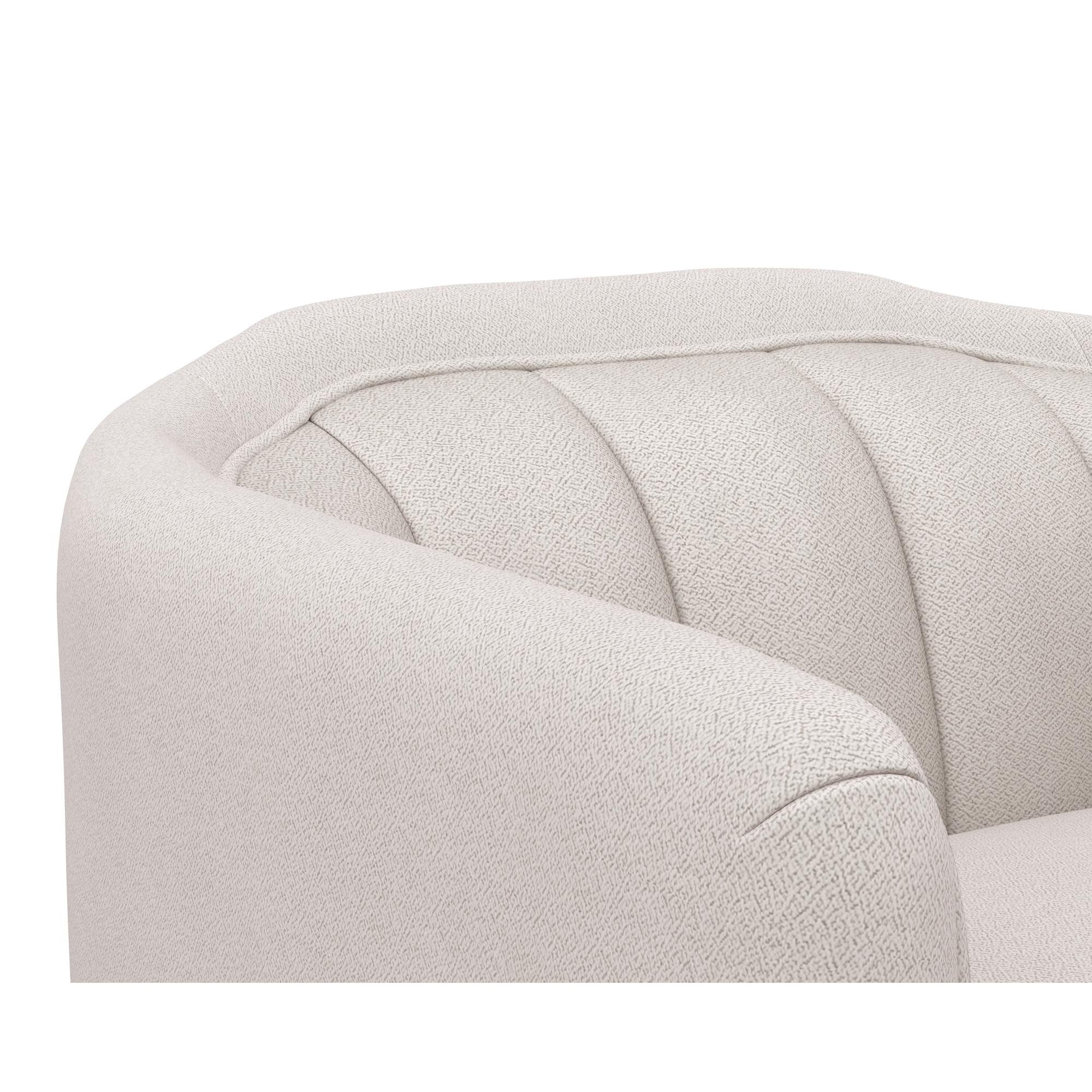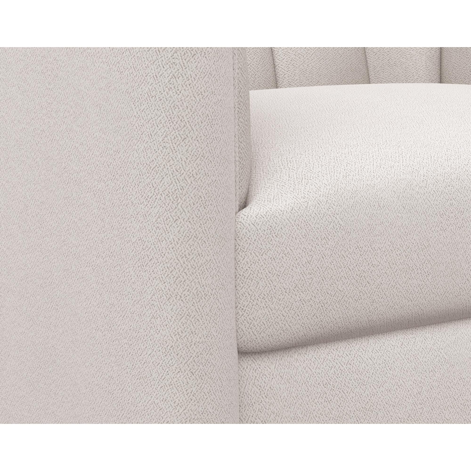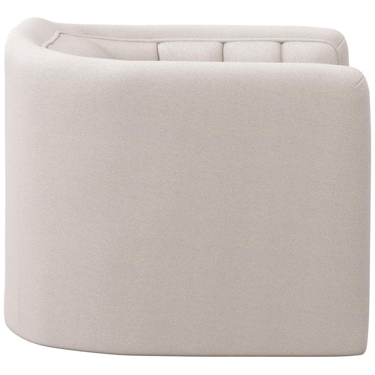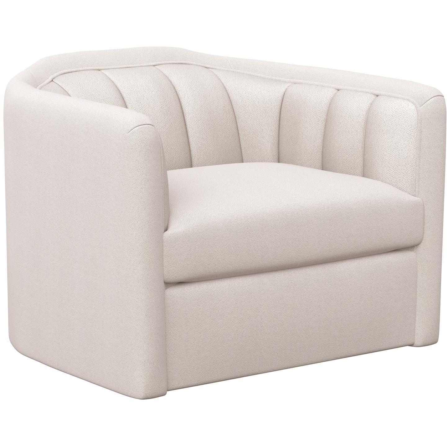 Introduce lavish comfort to any space with this contemporary swivel armchair. Stocked in alaska greige performance fabric. Features vertical tufting on the interior. Completed with a wooden frame and base. Coordinating sofa also available. Performance fabric is moisture repellent, durable and easy to clean.