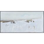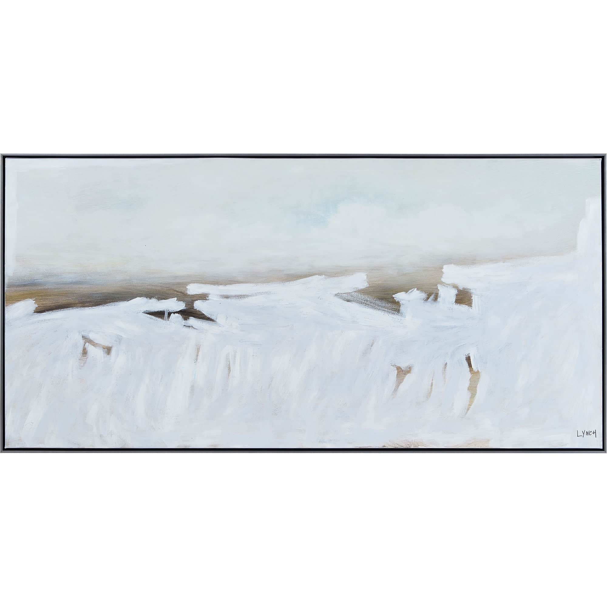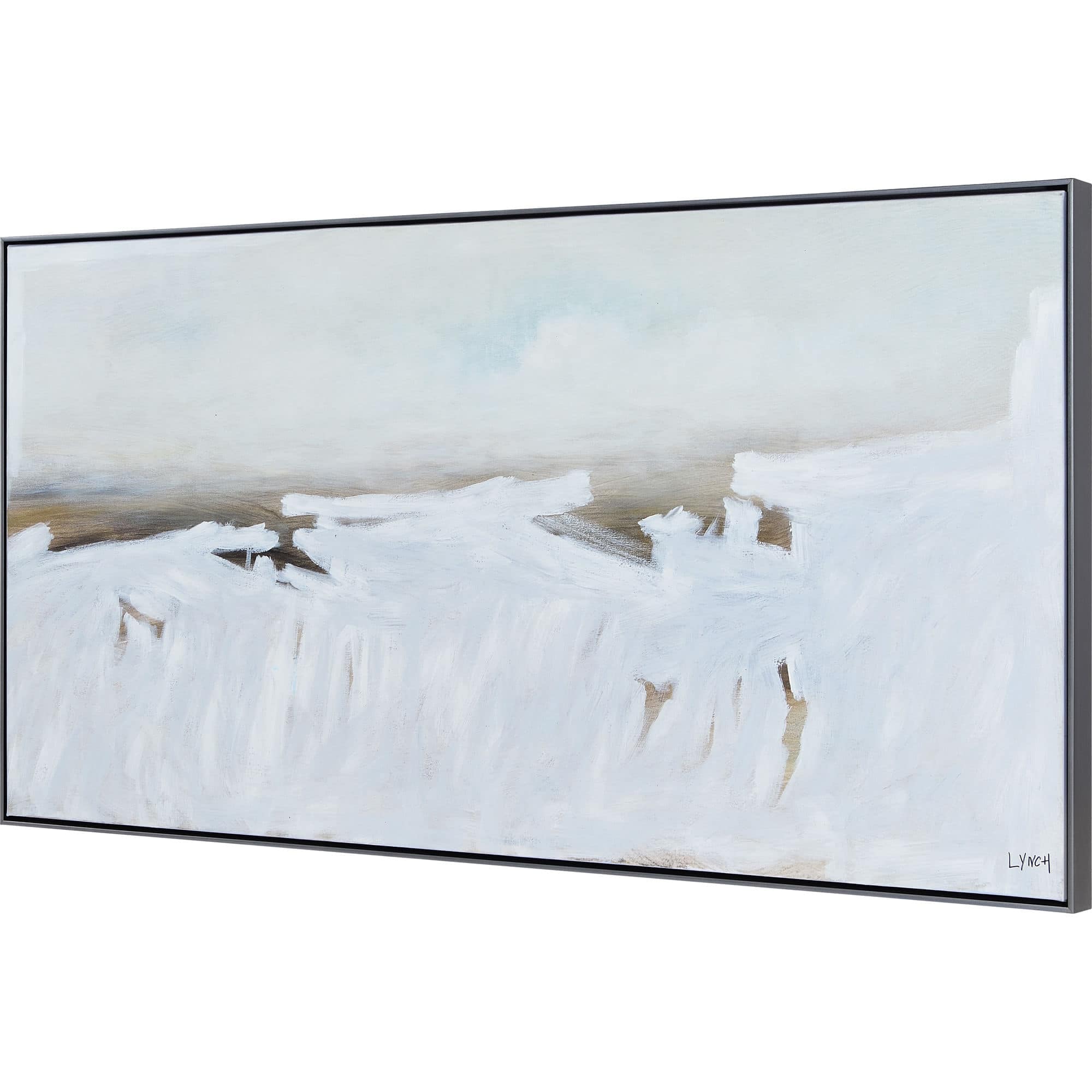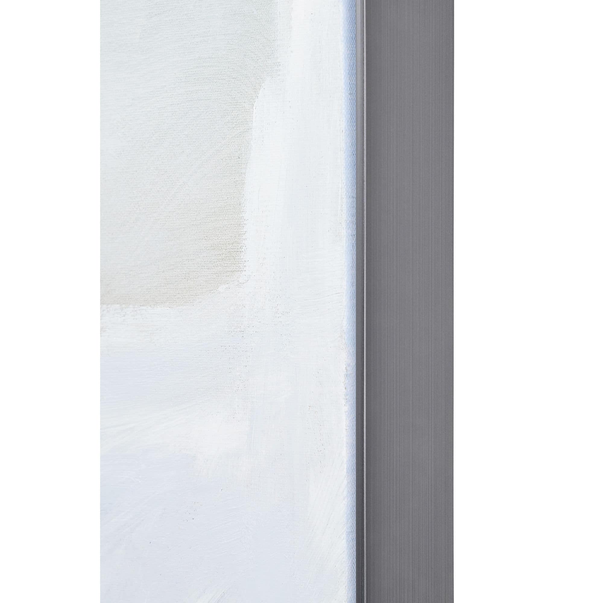 A textured finish heightens the feeling of the crashing waves captured within this piece. The pewter frame complements the minimal tones of the hand-painted piece without overpowering its design. The contemporary nature of this artwork fits well within a bedroom, hallway or living room space.
