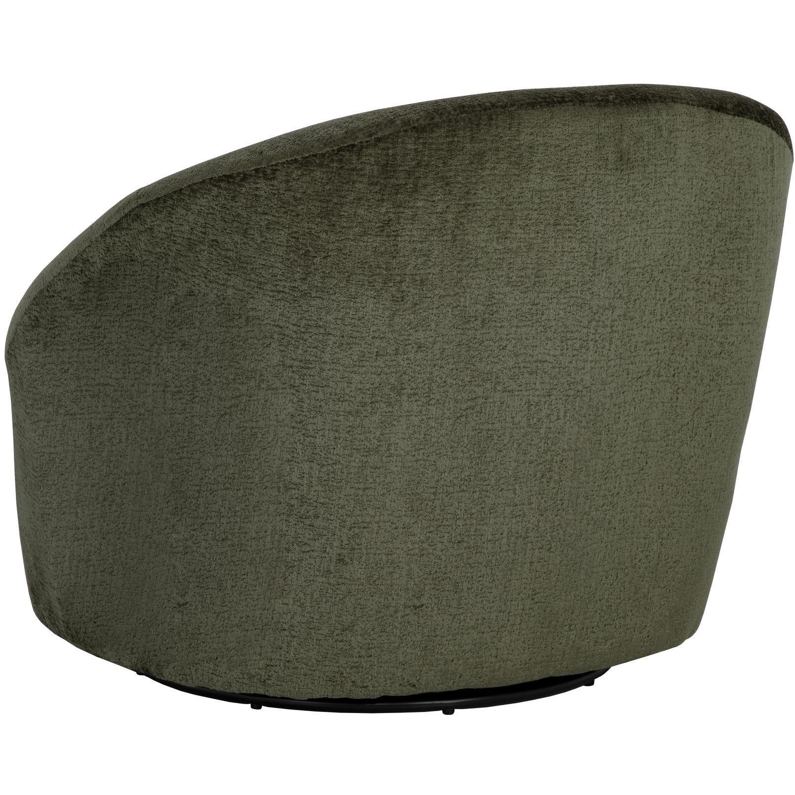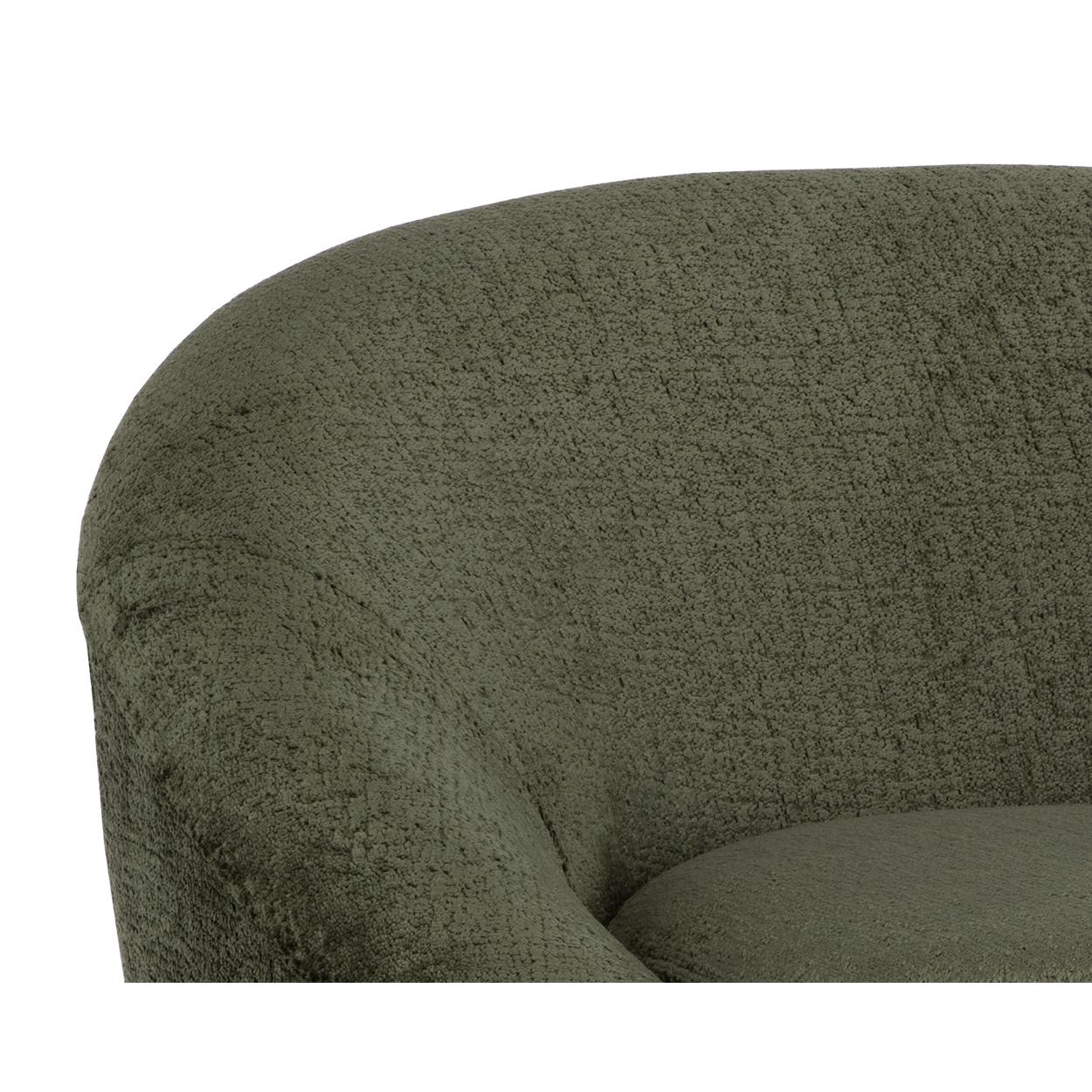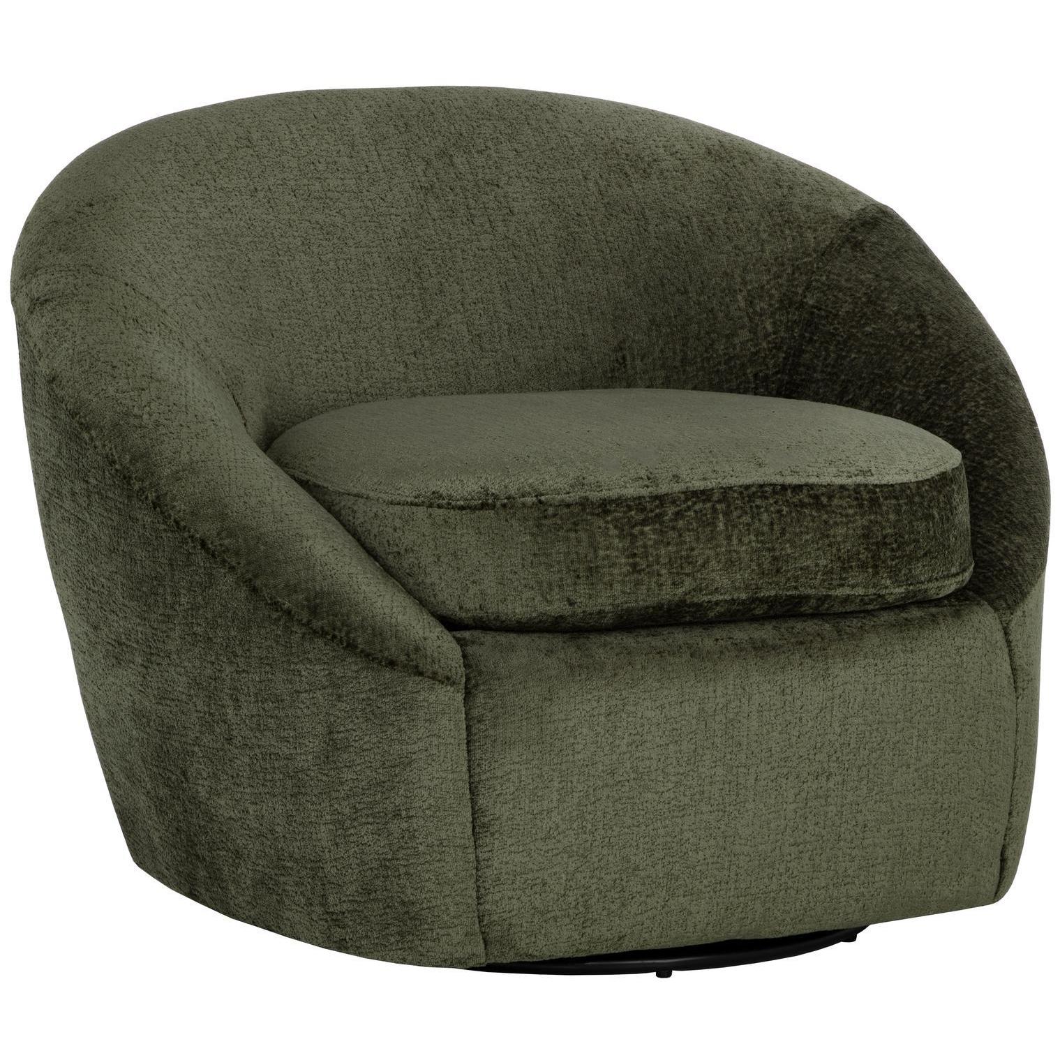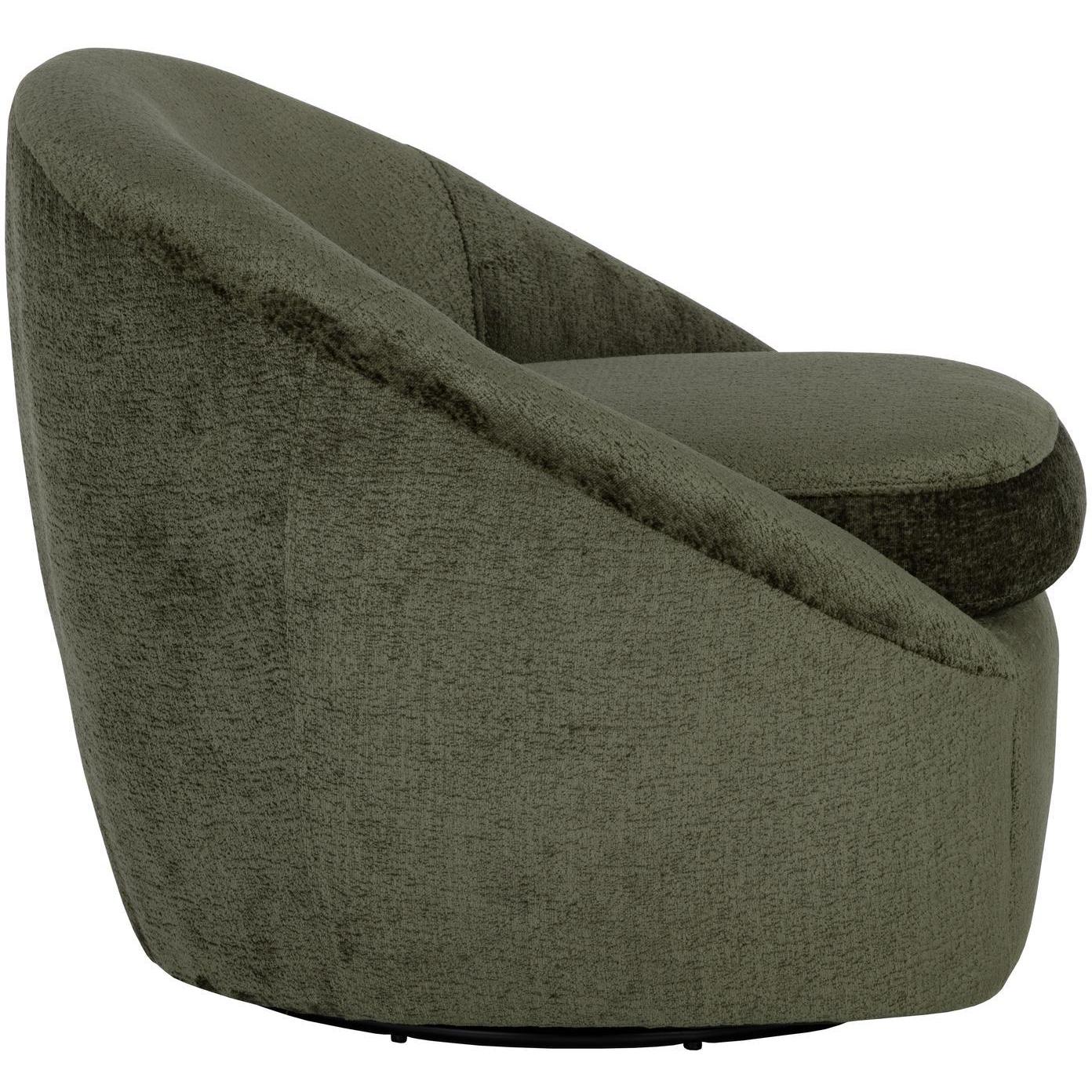 Designed with an irresistibly curvy shape, this contemporary swivel lounge chair is the perfect accent piece to make a statement in any room. Upholstered in abbington hunter green fabric with a black powder coated stainless steel base.