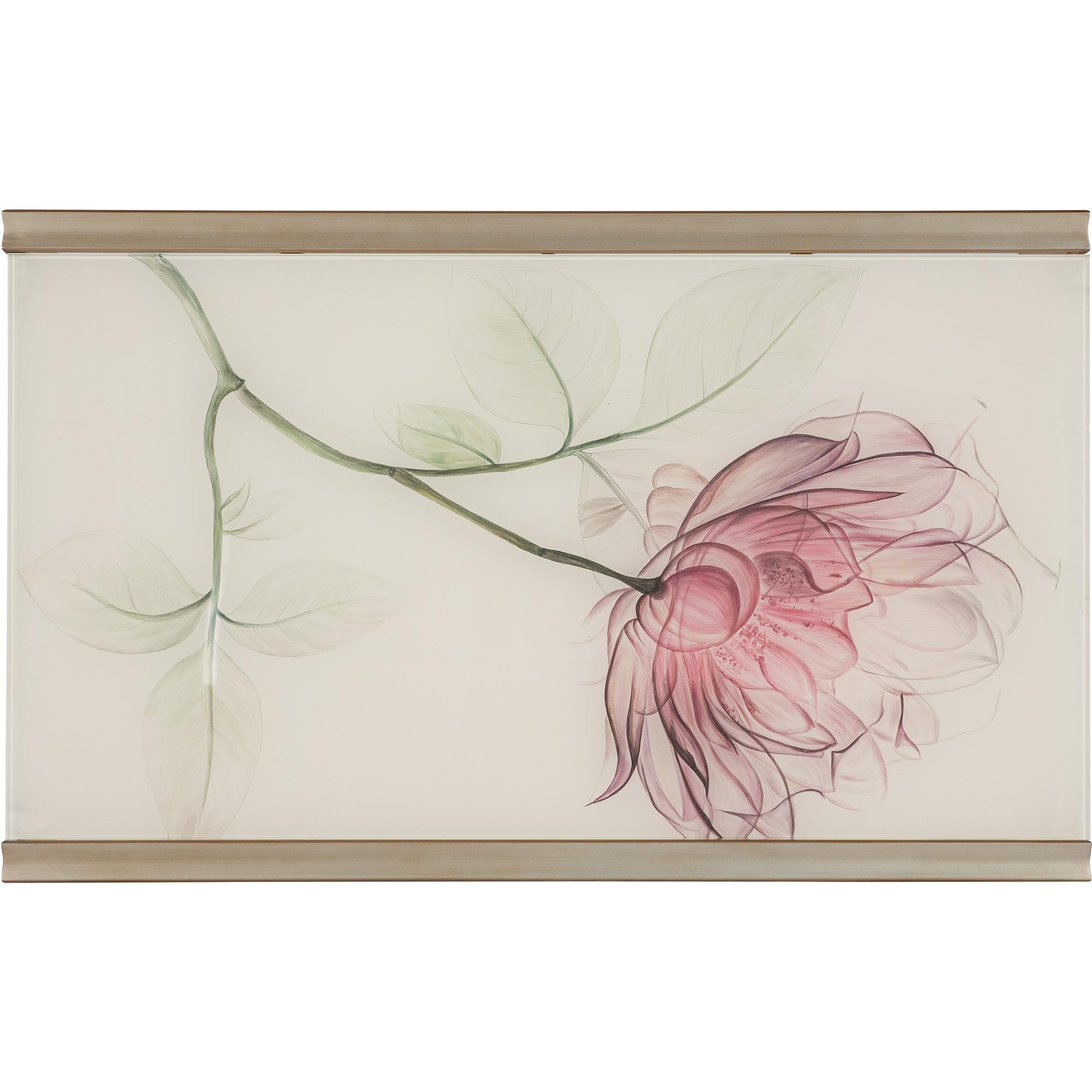 - Finish: Gold painted metal legs and frame with reverse painted glass with a pink and green floral design over a white background