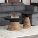 Mid-century influence on modern design. Solid mango wood table bases with sleek black iron table tops. This table set exudes style and will quickly become the centrepiece of your designed space. The pedestal design is timeless and will work well for formal or casual living room settings. Use both nested together, or seperate and spread around the room.