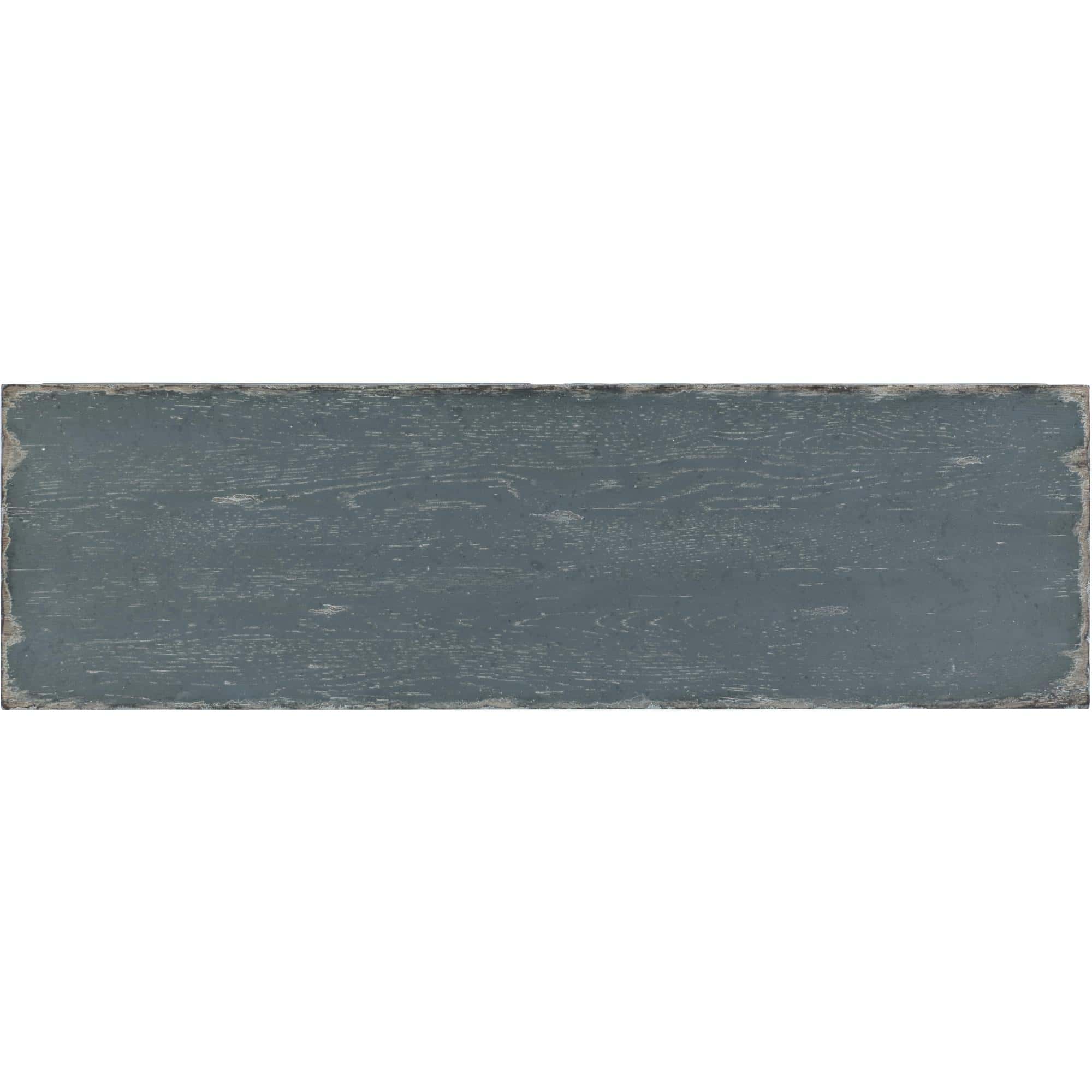 - Finish: Heavily distressed antique blue finish with dry brushing and rub through with matching blue painted hardware.