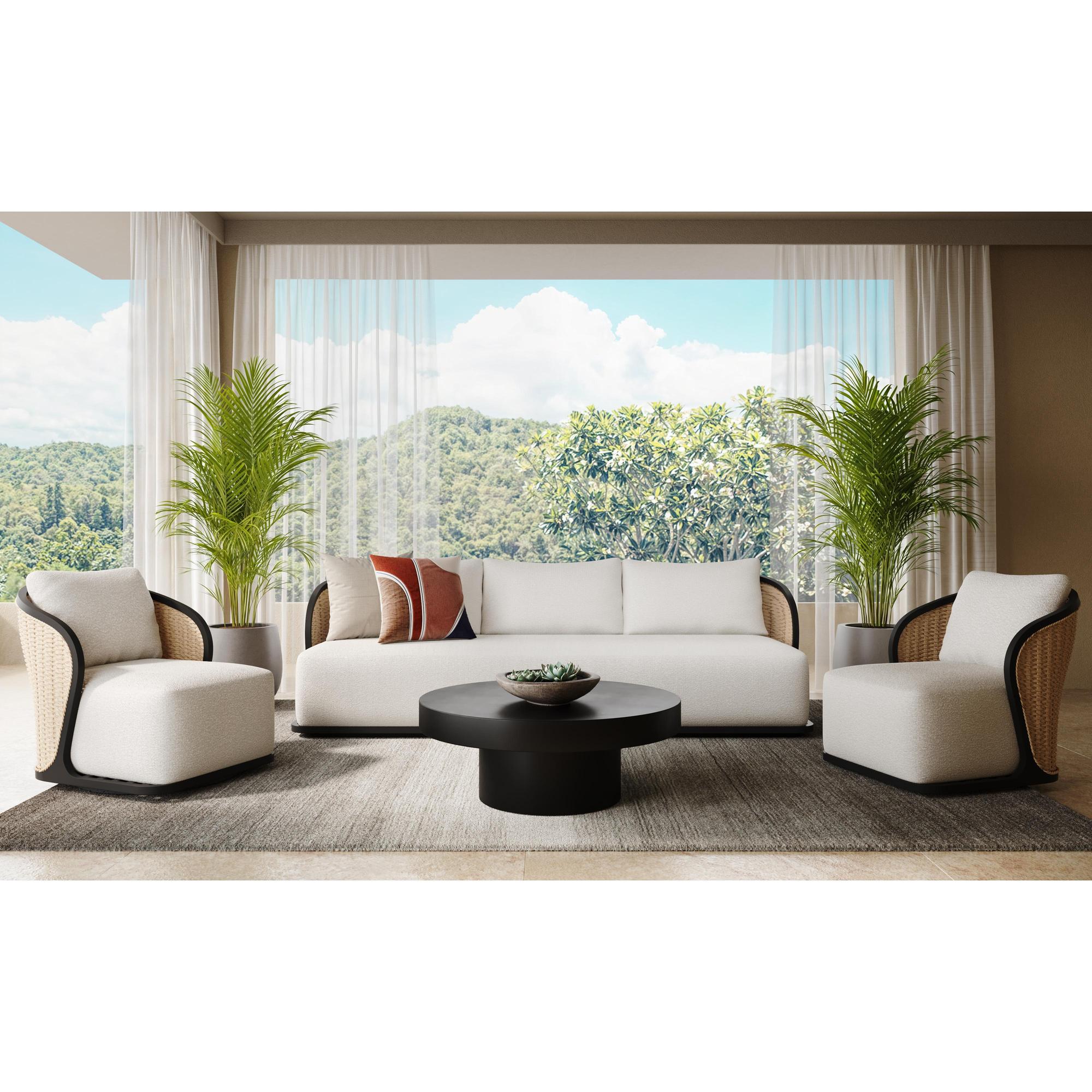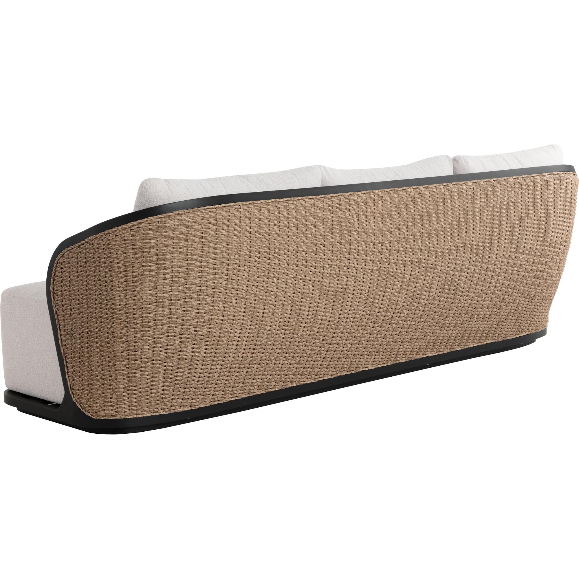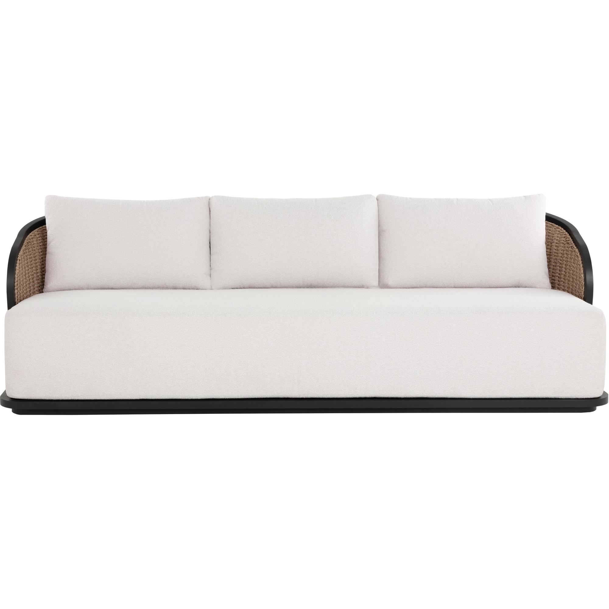 The Bora Sofa is an elevated yet effortless take on outdoor living. The curvaceous form of the barrel back seat beautifully highlights the intricate weave of the twisted wicker. A rich play on textures, this sofa has comfortable cushioning upholstered in louis cream boucle performance fabric.