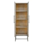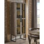 The Boulder Display Cabinet combines modern lines with functional elegance. Finished in a warm Boulder medium-brown, its glass doors and adjustable wood shelves offer a stylish way to showcase your favorite items. The sleek metal base adds an industrial touch, creating a versatile piece that complements any living or dining space with its blend of open and closed storage.