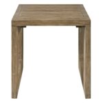 The Boulder End Table features a clean, architectural design with its open frame and sleek silhouette. Finished in a warm Boulder medium-brown, this table adds a touch of modern sophistication to any living space. Its minimalist form and natural wood grain create a versatile piece that complements a variety of décor styles.