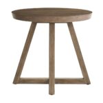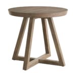 The Boulder Round Side Table adds a touch of architectural interest with its striking X-base design and round tabletop, finished in a warm Boulder medium-brown. Its clean lines and natural wood grain create a versatile piece that complements any living space, offering a stylish surface for drinks, books, or decorative items.