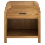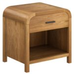 Embrace the curves with this beautiful 1-drawer accent table. The rich, wood-grain finish will work well with any décor style. The open shelf and fully extending drawer offer plenty of storage space and the charging station is an added convenience. Great as a bedside table, or by a sofa or accent chair in the living room.