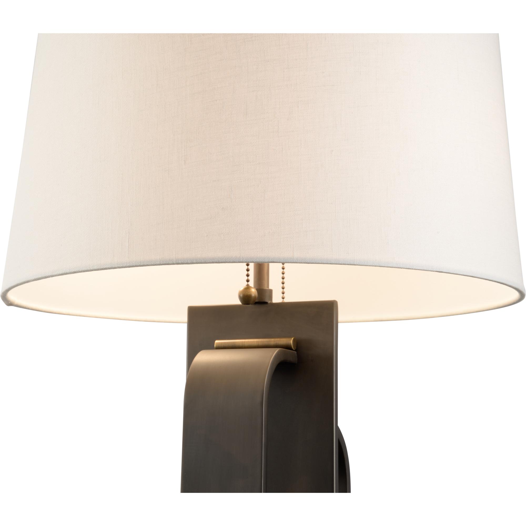 Rolled antique brass detailing complements the joinery of solid bronze parts on the Brazing Table Lamp. Rounded modern curves offer a silhouette that captures architectural softness.