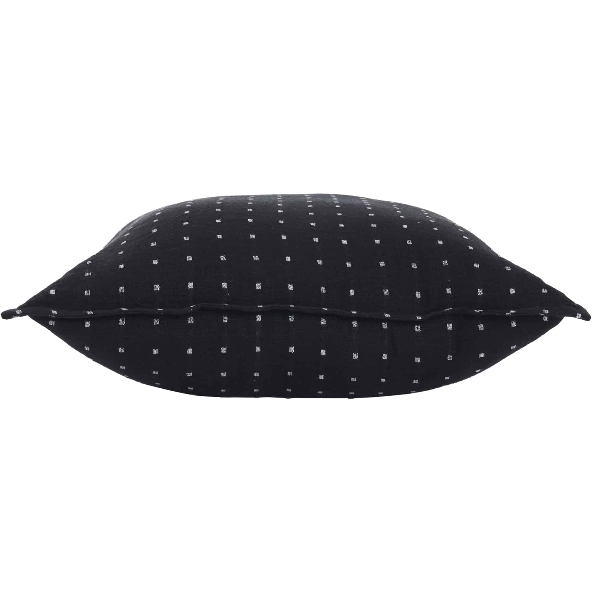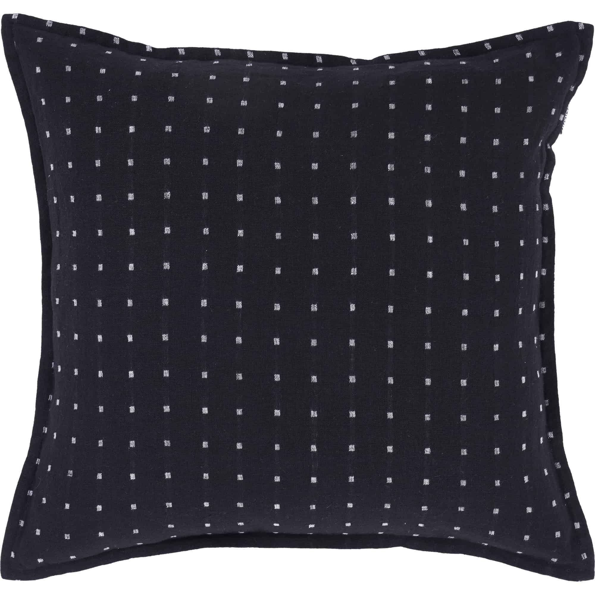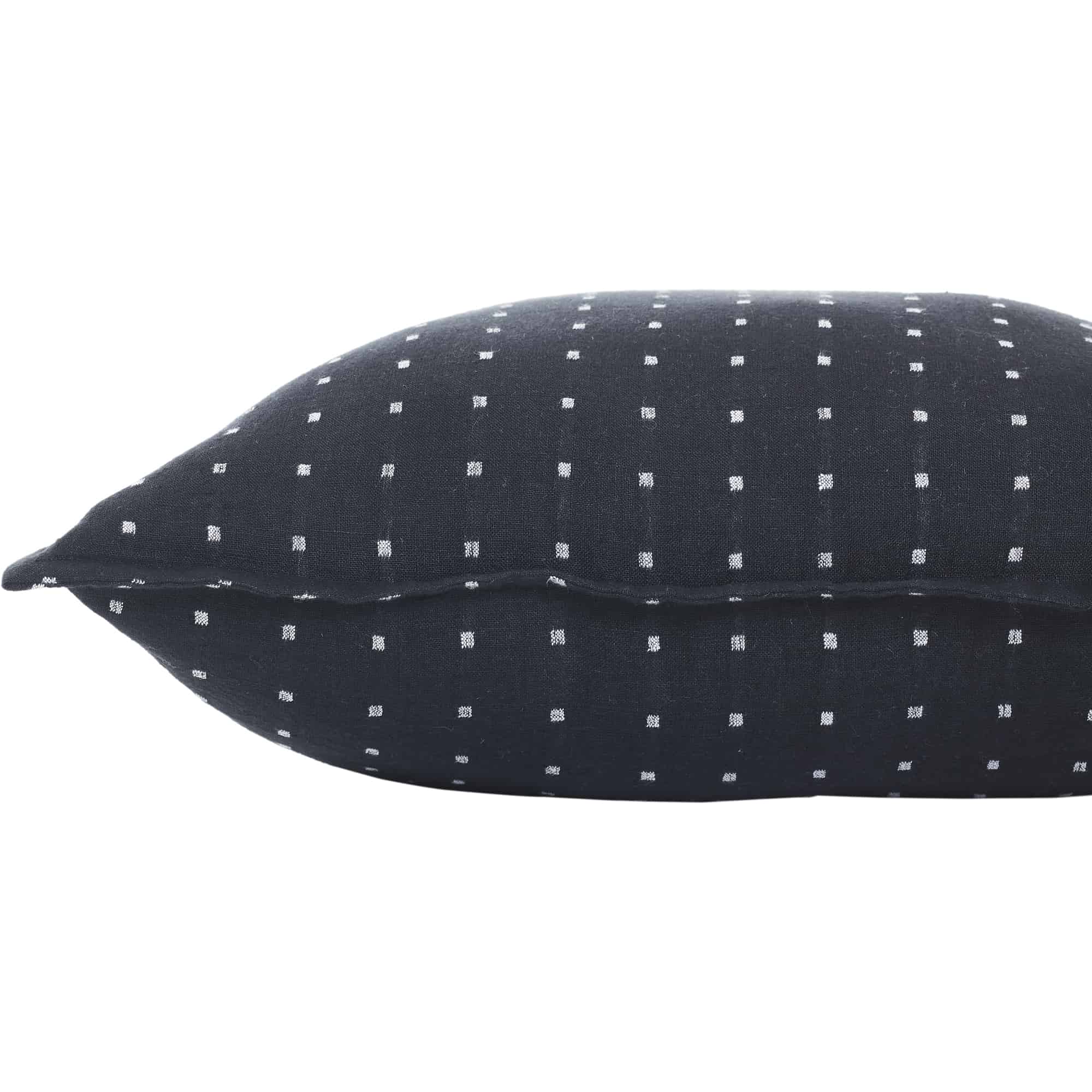 Going above and beyond the basic black accessory, this throw-pillow design carries character through a sleek format into the creative interior. With a black linen structure and white dot details, it can act as the embellished element or the neutral grounding piece depending on its design setting. With a square 20 by 20-inch structure and feather-down filling, it elevates the experience of rest within the bedroom or living space.