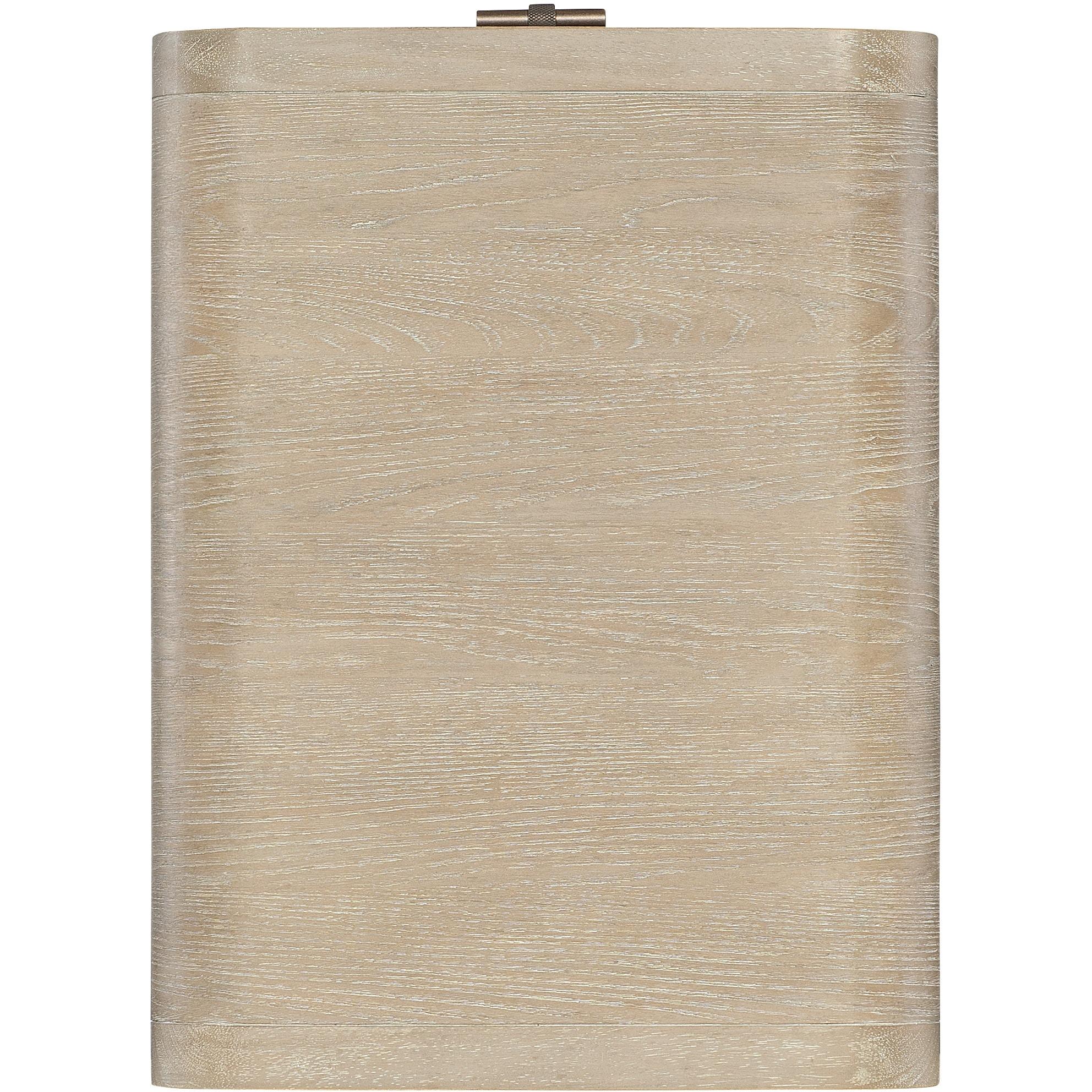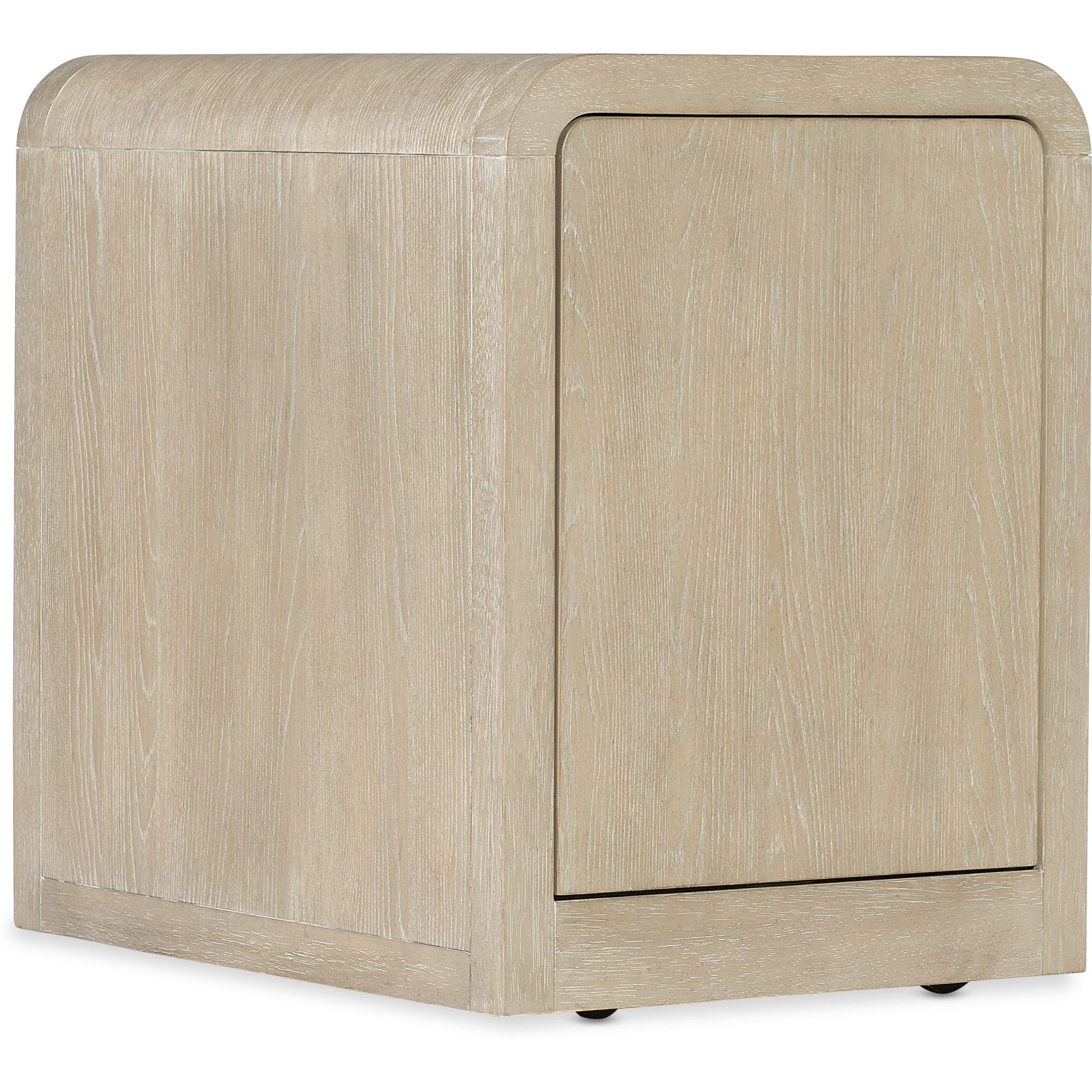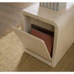 Finish: Two-tone finish pairs soft, elm veneers in a pebble hue with drawer fronts in a contrasting ivory with leathered texture.